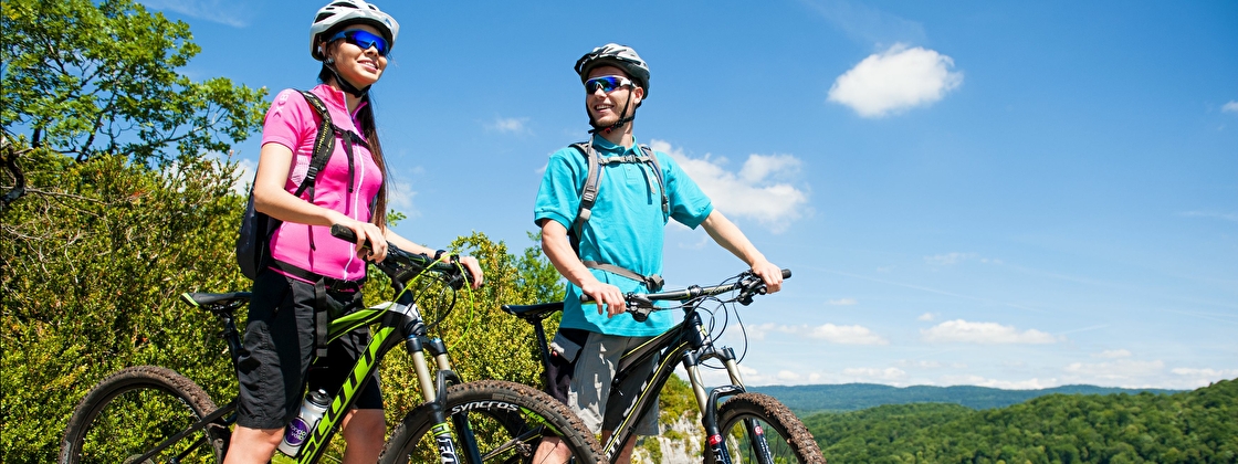 Vous êtes plutôt : Vélo électrique ou VTT classique ? Choisissez votre monture pour parcourir les belvédères de Clairvaux : entre chemins blancs, point de vue et la belle reculée de Frasne.