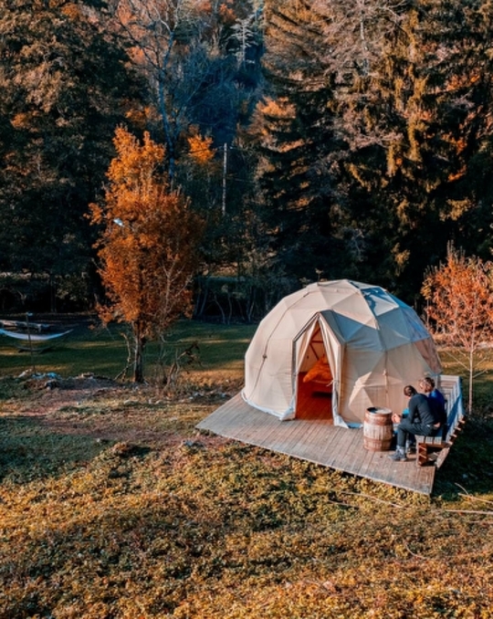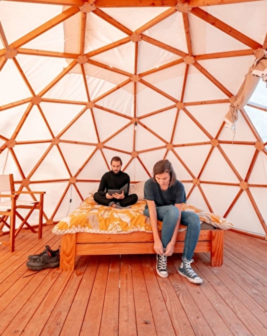 Un éco-lieu chaleureux pour faire coup double ! Le gîte du Moulin Burignat accueille ses hôtes à la ferme dans des chambres thématiques, voire… sous un dôme géodésique, pour une nuit au plus près de la nature.