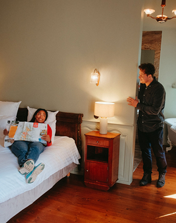Et puisque vous l'avez adoré ce midi, découvrez les chambres de Chez Gervais. Léa & Ben l'ont testé et c'est approuvé : " Le soir, retour chez Gervais : chambre cosy, acceuil top. Le plan idéal !"