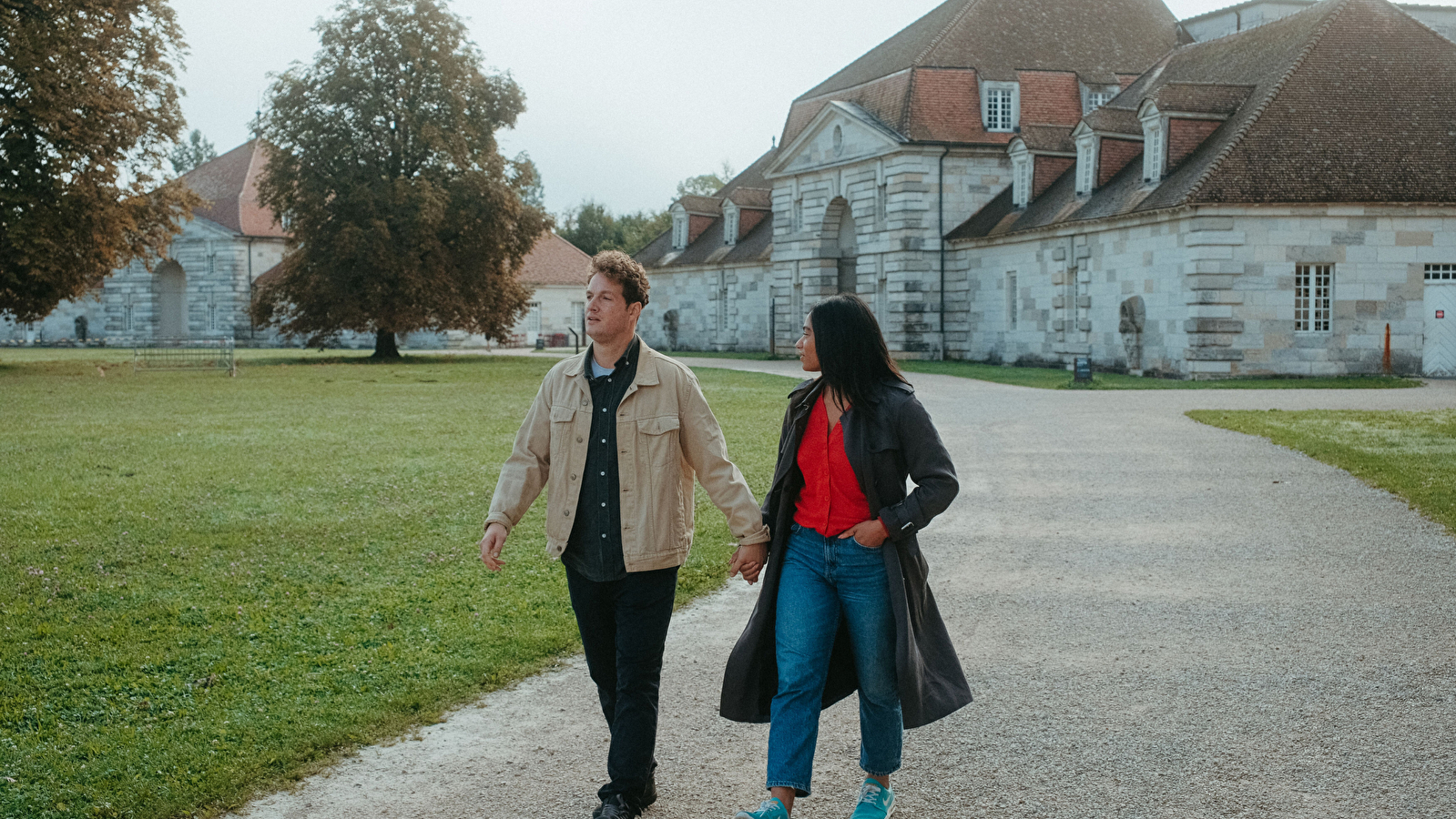 Bienvenue à Arc-et-Senans, où une surprise de taille vous attend : la majestueuse Saline Royale ! Derrière ses colonnes imposantes et son grand portail métallique, un chef-d’œuvre architectural se dévoile. Une fois à l’intérieur, ouvrez grand les yeux : 11 bâtiments vous encerclent, prêts à vous raconter leur histoire. Suivez le sentier jusqu’à la maison du directeur, flânez, explorez… Entre jardins, expos et voyage immersif à travers les sites UNESCO du monde entier, votre curiosité risque bien d’être comblée !