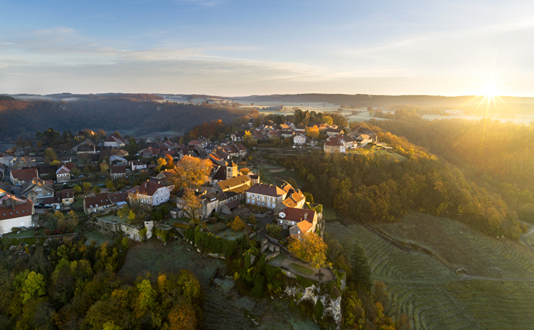 - Au nord de la ville se trouve le vignoble jurassien, pour faire le plein de vin jaune, poulsard et autre savagnin. En chemin, ne manquez pas de faire étape à Château-Chalon (20 min.) et Baume-les-Messieurs (20 min.), tous deux classés « Plus Beaux Villages de France » !