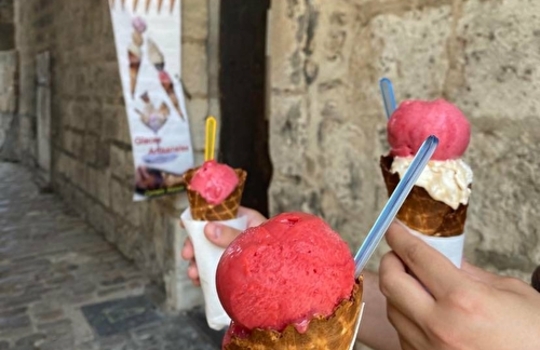 Après une bonne marche, quoi de mieux que de déguster une bonne glace artisanale ? Ici, on se laisse porter par la douce odeur des cônes qui cuisent sur place. Déambuler, glace à la main, dans les ruelles de la ville : une belle façon de conclure cet après-midi !