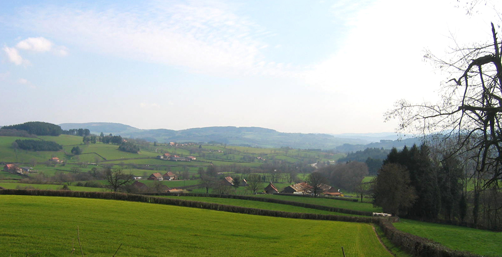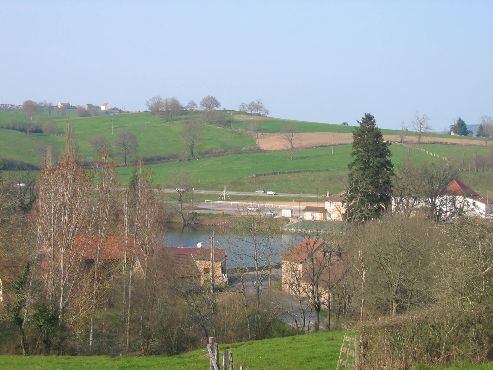 3 - Prendre à droite la D 379 et, au tournant, continuer tout droit par le chemin de terre (voir au passage le plan d'eau de Pontereau et plus haut, à droite, la Madone de la Butte de Suin). Franchir deux intersections. Arrivé à un chemin goudronné, l’emprunter à gauche. Continuer tout droit par un chemin de terre. Franchir un chemin goudronné et continuer en montant (maison avec pigeonnier) jusqu’au col.