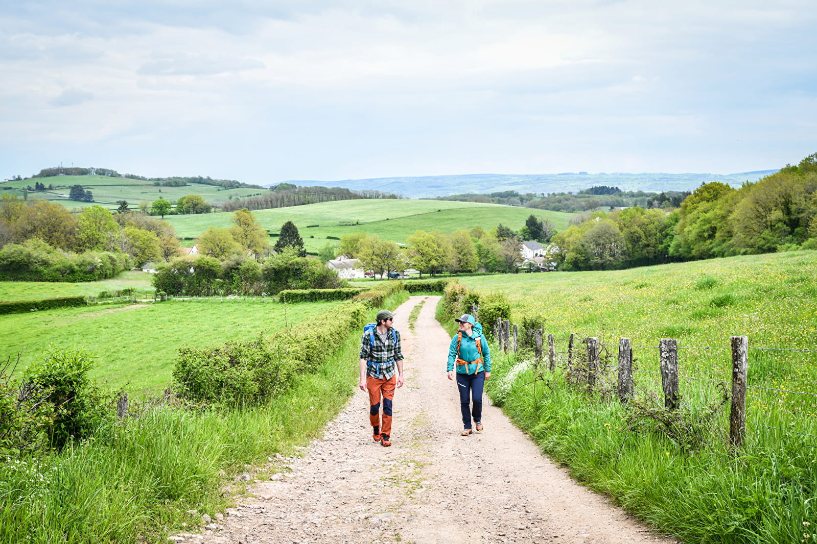 Traversez la petite route et continuez de suivre le GR® jusqu'à Petiton. Dans le hameau, laissez le GR® et prenez à droite une piste balisée, tout droit pendant deux kilomètres, jusqu'au croisement de l'Eschenault sur la D18.