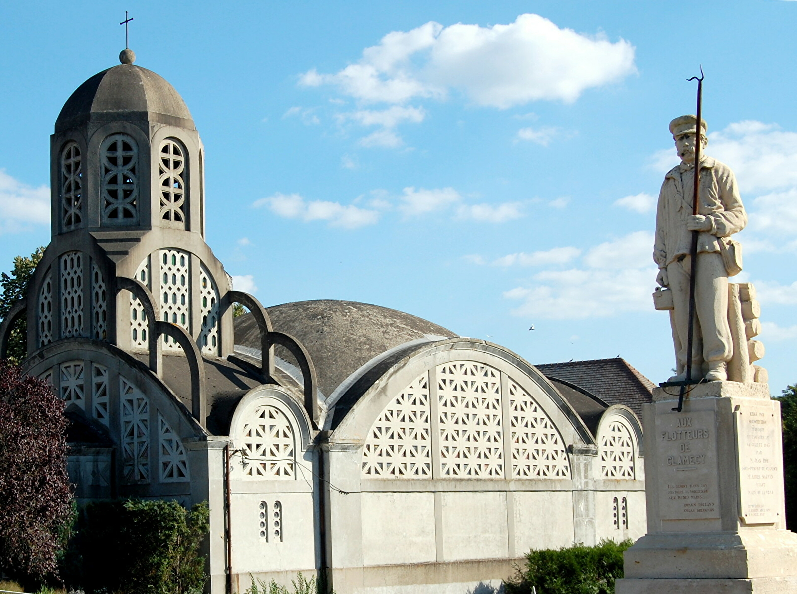 Les premiers regards sont attirés par l'Yonne, par la statue du flotteur située sur le pont, ainsi que par la singulière église de Bethléem toute en ciment armé.
