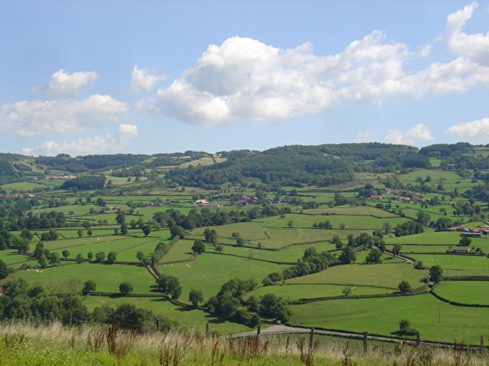 2 - Descendre vers la Grosne par le chemin du Moulin (sur la gauche, ancien moulin restauré). Traverser la rivière et poursuivre tout droit. Au croisement, prendre à gauche puis quitter aussitôt ce chemin pour s’engager à droite sur un raidillon. Après environ 200 m, tourner à nouveau à droite pour monter jusqu’au hameau de la Bussière.