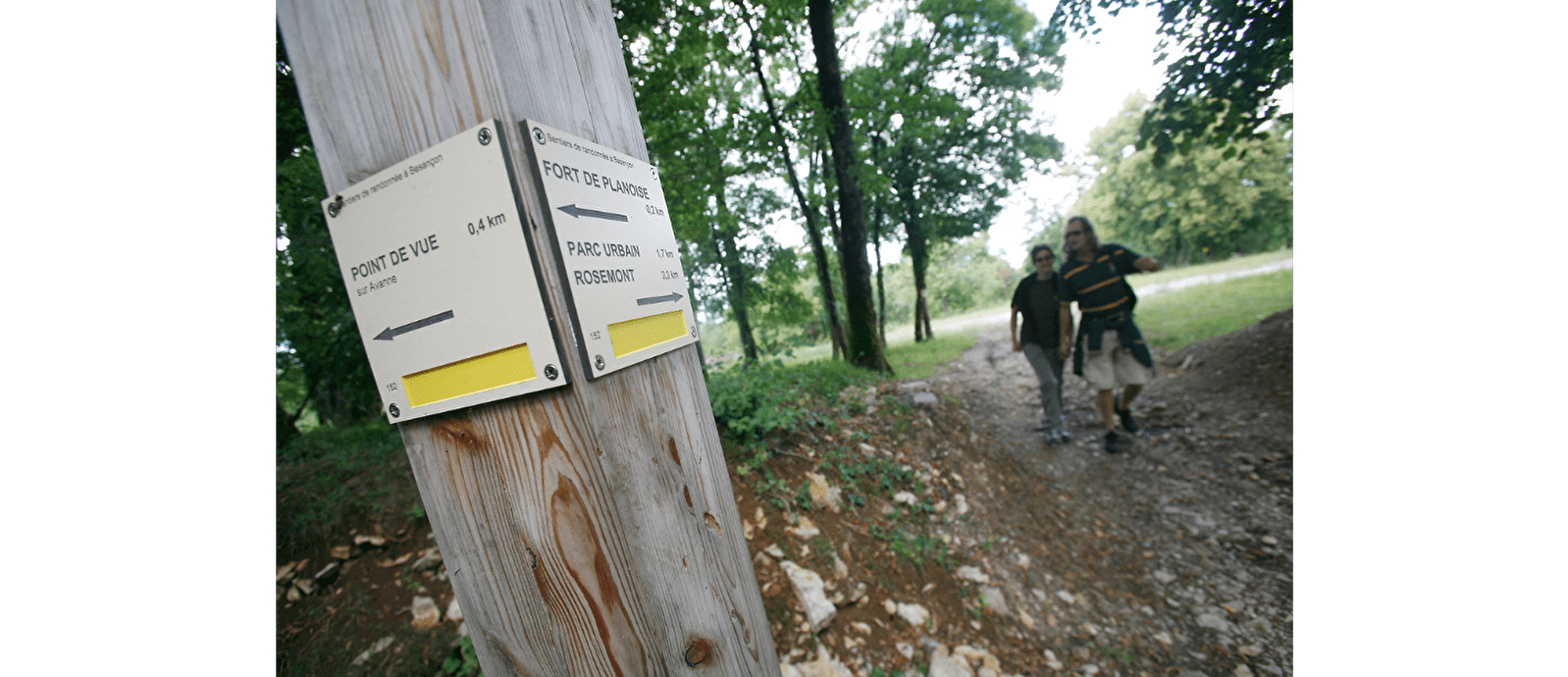 Un parcours assez sportif d'un dénivelé de 250 m pour découvrir sur le versant sud de la colline les nombreuses traces d'anciennes cultures en terrasse. Au nord, un cheminement forestier permet la liaison avec le parc urbain.