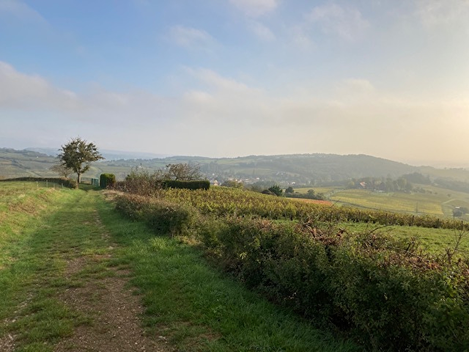 - Au bout du chemin, descendre à gauche le sentier très pentu - prudence par temps humide - profiter de la vue sur la vallée de la Saône, la forêt de GIVRY, l’agglomération chalonnaise.