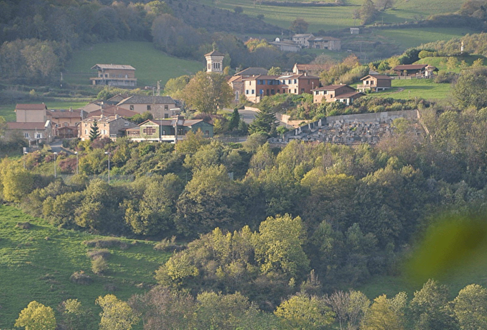 départements, le Rhône et la Saône et Loire et de deux territoires, le Beaujolais et la Bourgogne. Sur les quarante-sept hameaux qui composent la commune, trois sont d’ailleurs coupés en deux par cette limite départementale. De nombreux cols à plus de 700 m entourent notre village. Cette situation géographique en altitude exclut la culture de la vigne, c’est pourquoi pâturages et forêts recouvrent largement ce territoire où l’agriculture, et particulièrement l’élevage de chèvres, est solidement