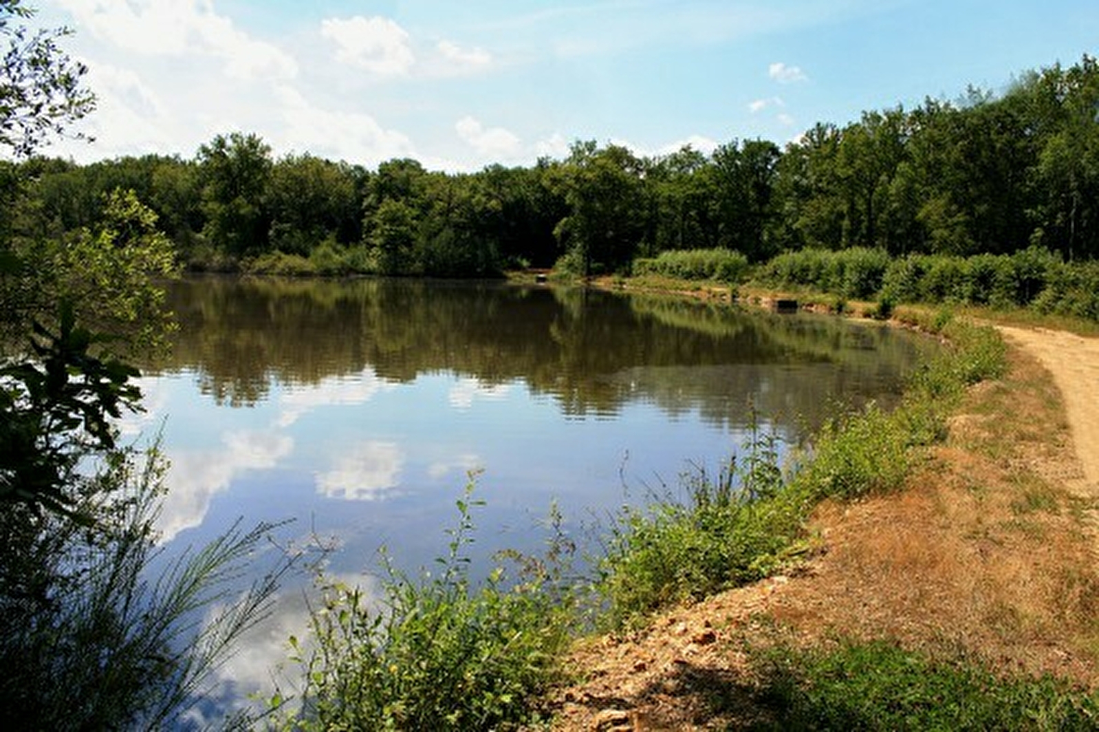 (D/A) Prendre la rive droite de l'étang en sortant du parking et longer jusqu'au croisement avec une petite route.