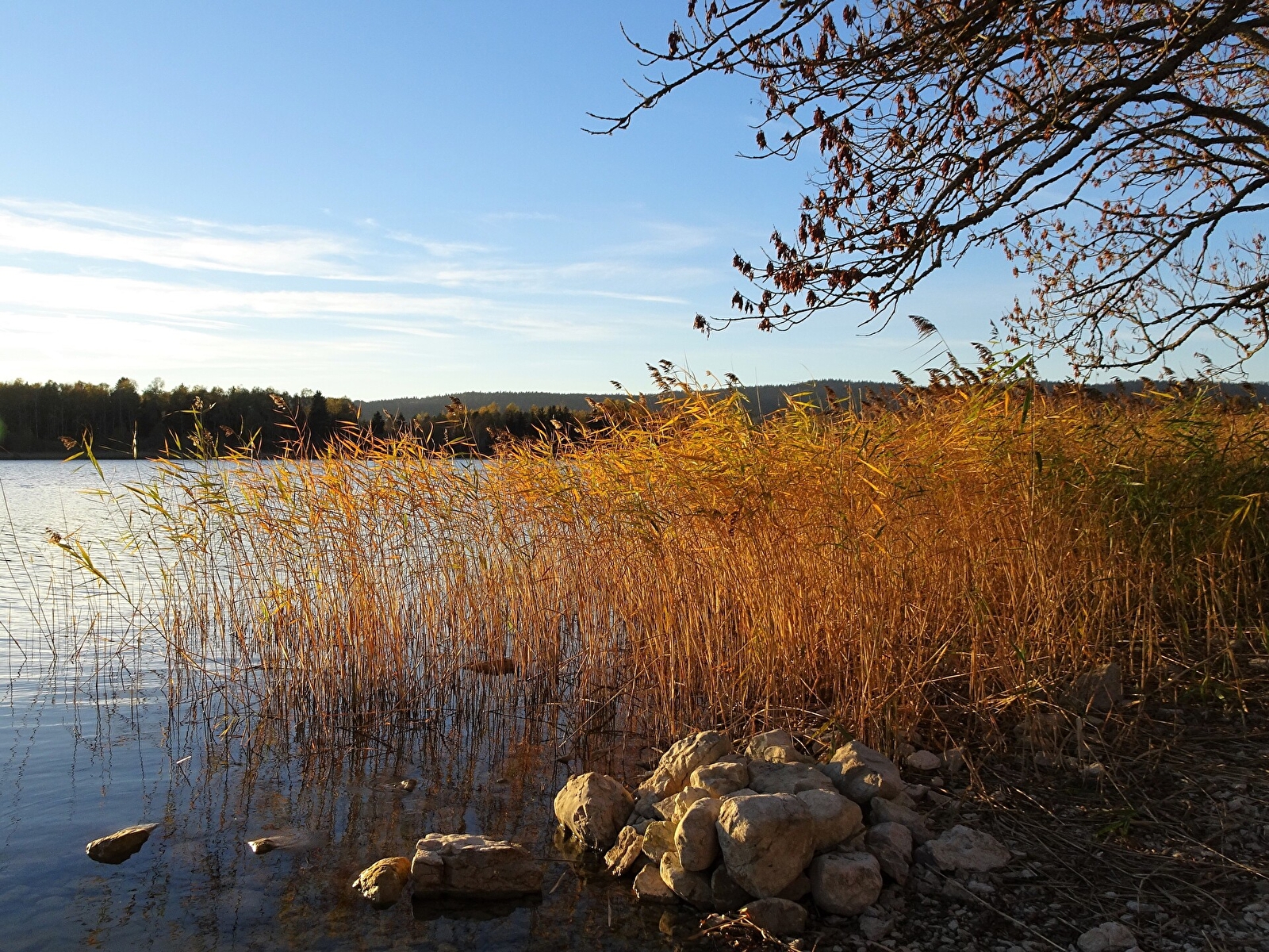 Avant de rejoindre l'Auberge du Hérisson, le Camping de l'Abbaye à Bonlieu ou le camping du Lac de Narlay, profitez du coucher de soleil au lac d'Ilay et admirez ses abords aux couleurs turquoise et ses falaises en toile de fond.