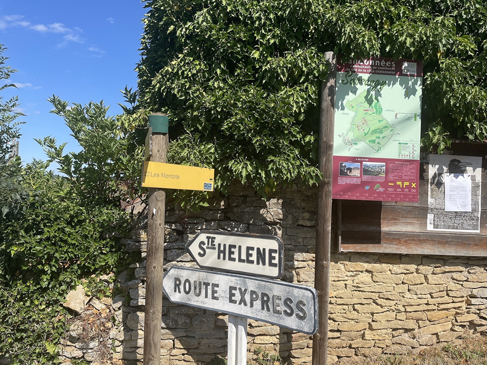 - Prendre à gauche, face à la croix monolithe et suivre le chemin traversant les pelouses calcicoles typiques de la Côte Chalonnaise.