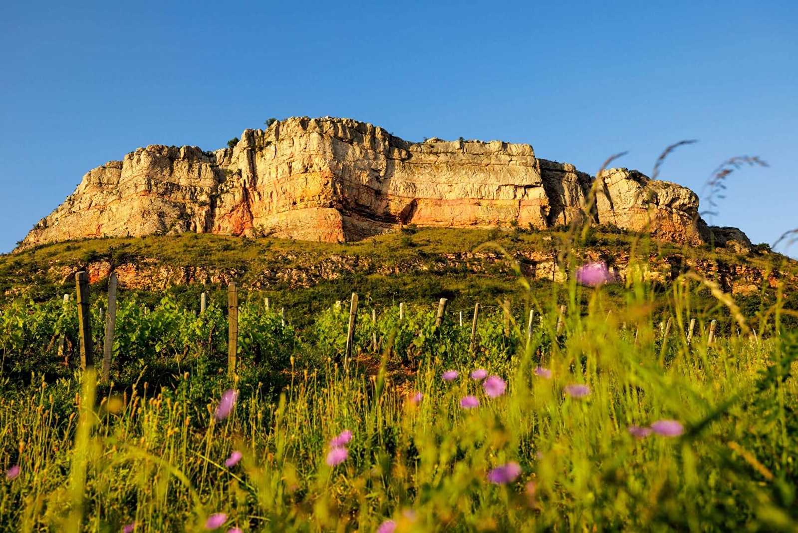 Les points de vue sur la Roche de Solutré diffèrent selon les endroits d'où on l'admire. Sous tous les angles, elle fait son effet tel un « navire pétrifié surplombant une mer de vignes », selon l'expression utilisée par le poète natif du pays Alphonse de Lamartine pour la décrire. En foulant son sol, fréquenté par les hommes depuis 57 000 ans, on fait l'expérience de son caractère mystique, se sentant transportés dans des époques lointaines, en connexion à nos ancêtres. Il serait dommage de ne pas profiter de cette escapade pour faire un stop au musée de Préhistoire mettant en lumière cet incroyable gisement, mais aussi à la Maison du Grand Site pour mieux appréhender toutes les richesses de ce Grand Site de France.