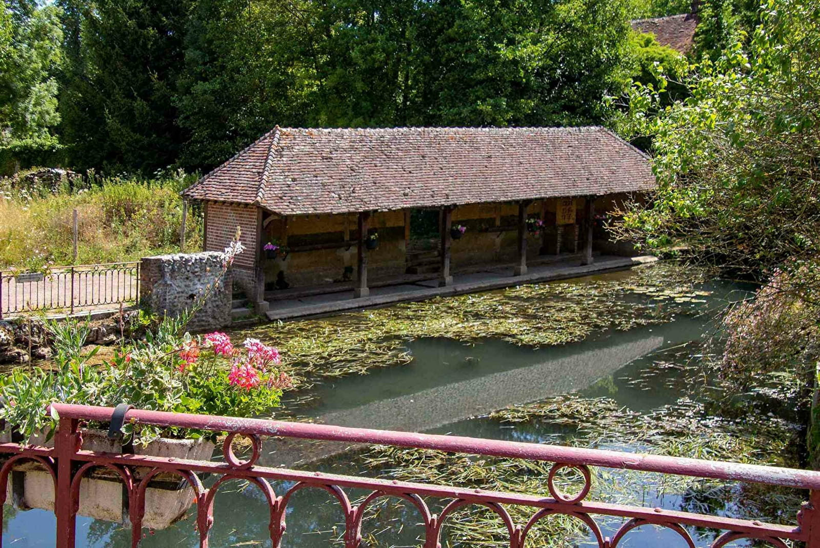 (12) Déboucher sur une clairière avec en face, quelques tables de pique-nique, une forge et une réplique de bas fourneau installées par l'association du Ferrier de Tannerre. Ne pas aller plus loin (sauf pour une visite plus approfondie). Tourner sur la droite, direction le Puits. Passer devant cet ancien puits à main droite, poursuivre en obliquant légèrement sur la gauche.