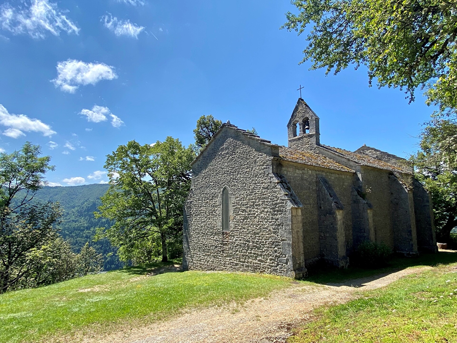 Continuer tout droit jusqu'à l'extrémité du vallon pour trouver la chapelle romane de Saint-Romain (dominant la vallée de la Bienne ; vue sur les chaînons du Jura).