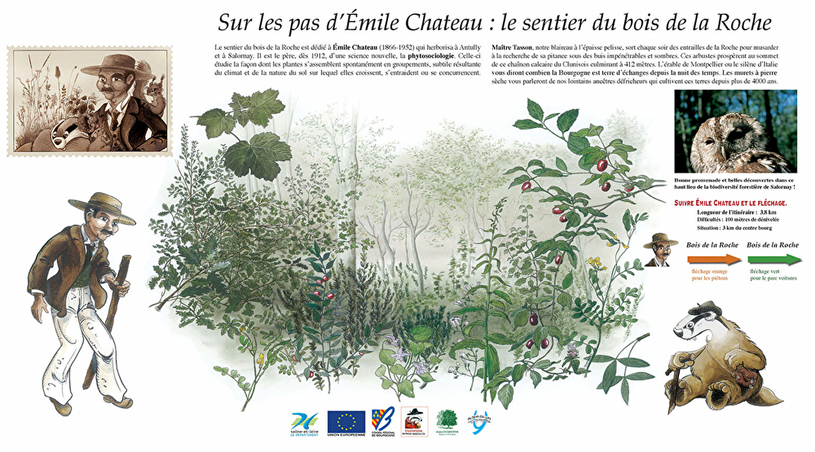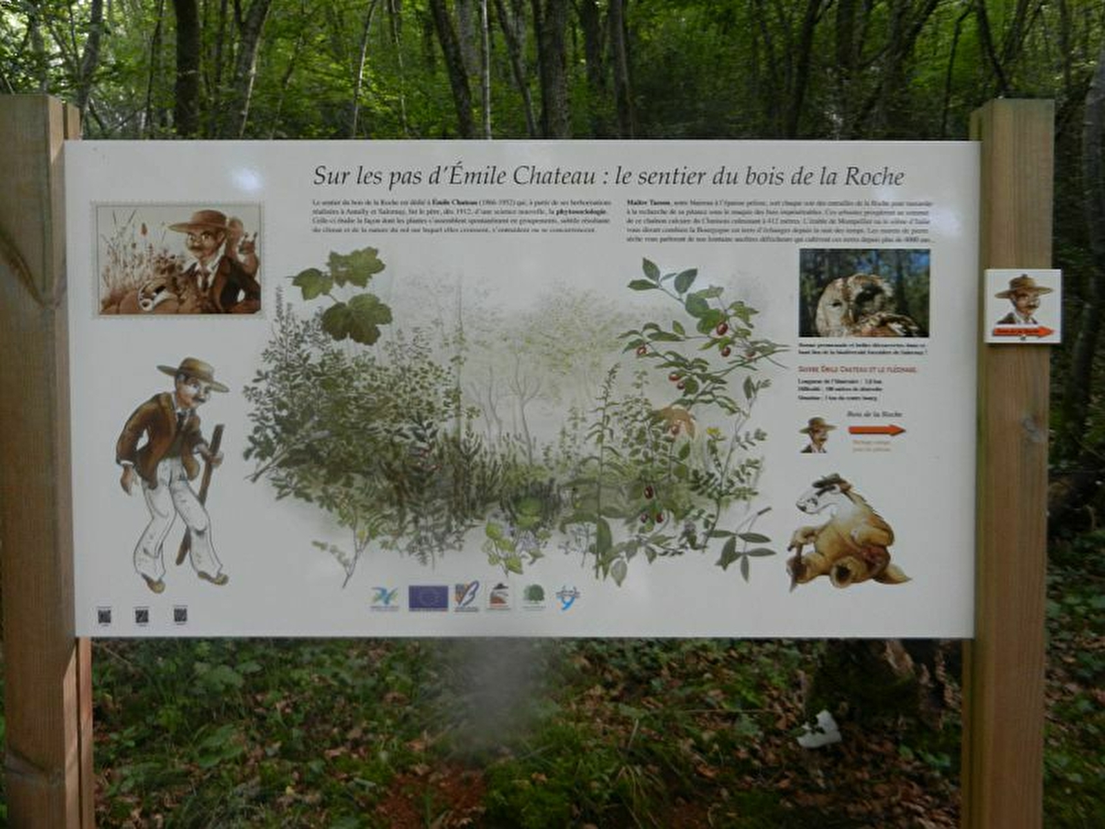 Le sentier du Bois de la Roche chemine jusqu'à la crête du massif du vaste bois des Brûlées. Implanté sur un chaînon calcaire sculpté par l'érosion, ce relief résulte de l'accumulation de sédiments dans une mer jurassique il y a 170 millions d'années. Dans ce boisement inscrit à l'inventaire des Espaces Naturels Sensibles du département de Saône-et-Loire, le sentier permet l'exploration d'un habitat forestier qui profite de la chaleur méridionale jusqu'en Bourgogne du Sud. Sur les traces du botaniste Émile Chateau, du sous-bois humide et moussu à la canopée brûlée de soleil, vous découvrirez les différentes associations forestières de ce haut-lieu de la biodiversité bourguignonne.