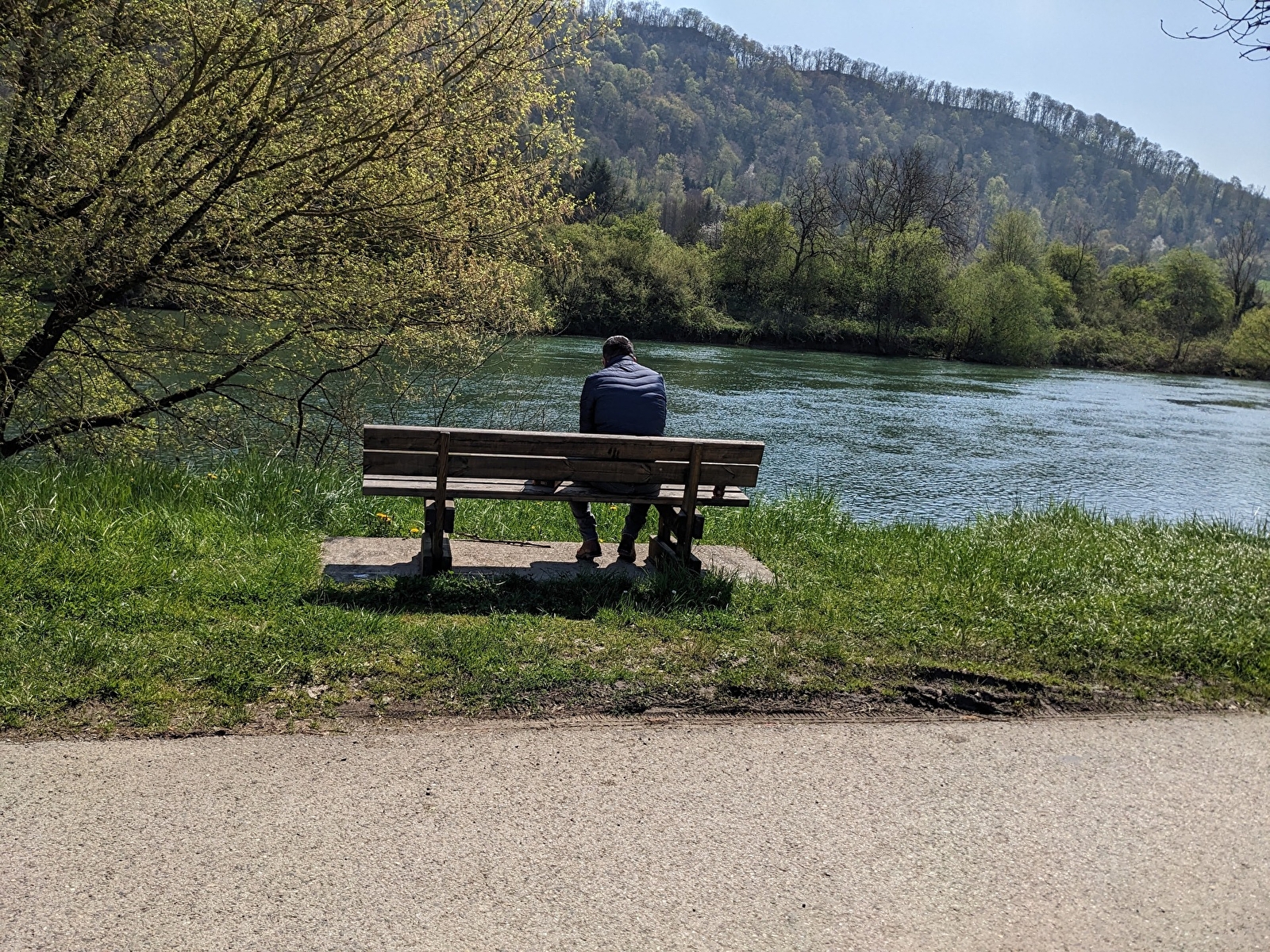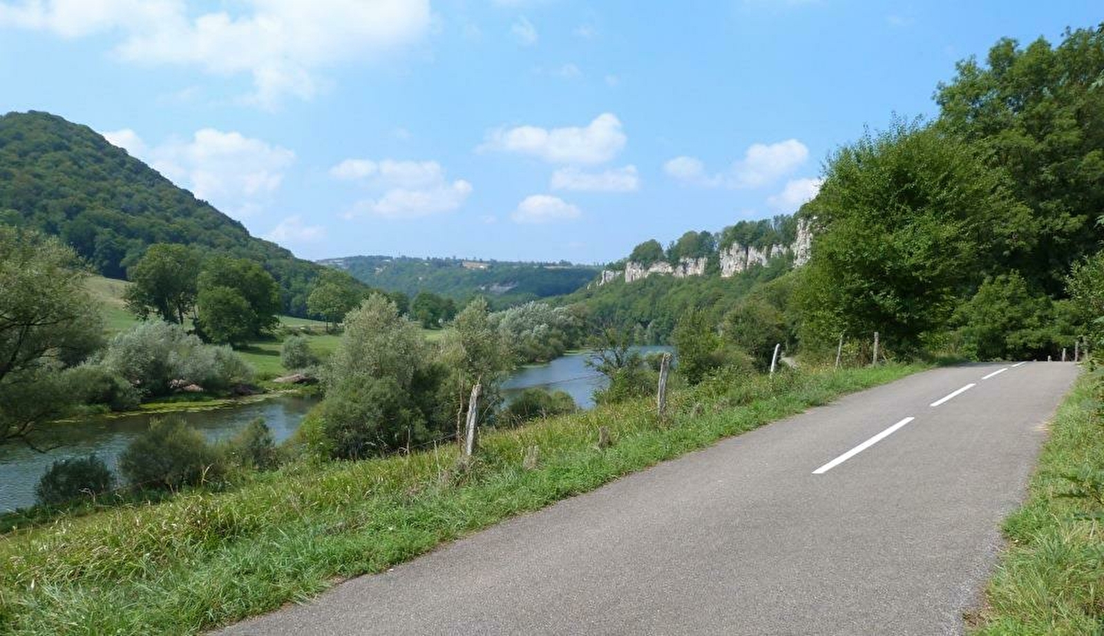 Étape 1 : Suivez la voie verte le long du Doubs (la passerelle est à votre gauche). Vous parcourez ainsi près de 2,3 km au bord de l’eau et à l’ombre des arbres, avec quelques habitations ici et là.