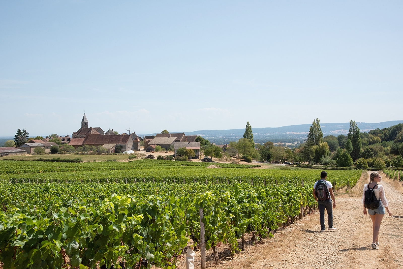 - Au village, contourner l’église pour découvrir les coteaux viticoles (vue d’en bas cette fois). Face à l’église se dresse la croix de 1572 des Seigneurs du Tartre. Couper la Départementale 153 pour redescendre tranquillement à SAINT-BOIL.