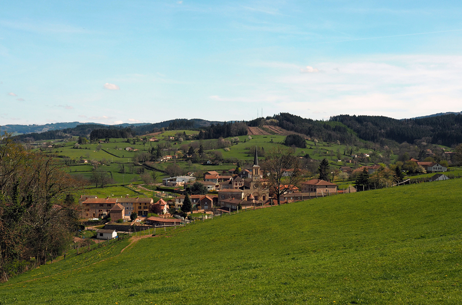Au point N°3 « La Favrie » obliquez sur la droite et quittez la route goudronnée pour prendre un chemin de terre, longer le bois, la vue porte loin sur le village de Tancon et même plus loin encore sur celui de Saint Julien de Jonzy. Vous entrez dans le Bois Gauthay. De nombreuses coupes sont effectuées dans ce bois d’épicéas. Vous apercevez entre quelques arbres le clocher de Coublanc. Arrivée au point N°4 « les quatre chemins » tournez à droite, en descendant, sur votre gauche, de superbes vues sur le village de Villers dans le département de la Loire. Les points de vue de cette balade sont extraordinaires, sur le Roannais face à vous.