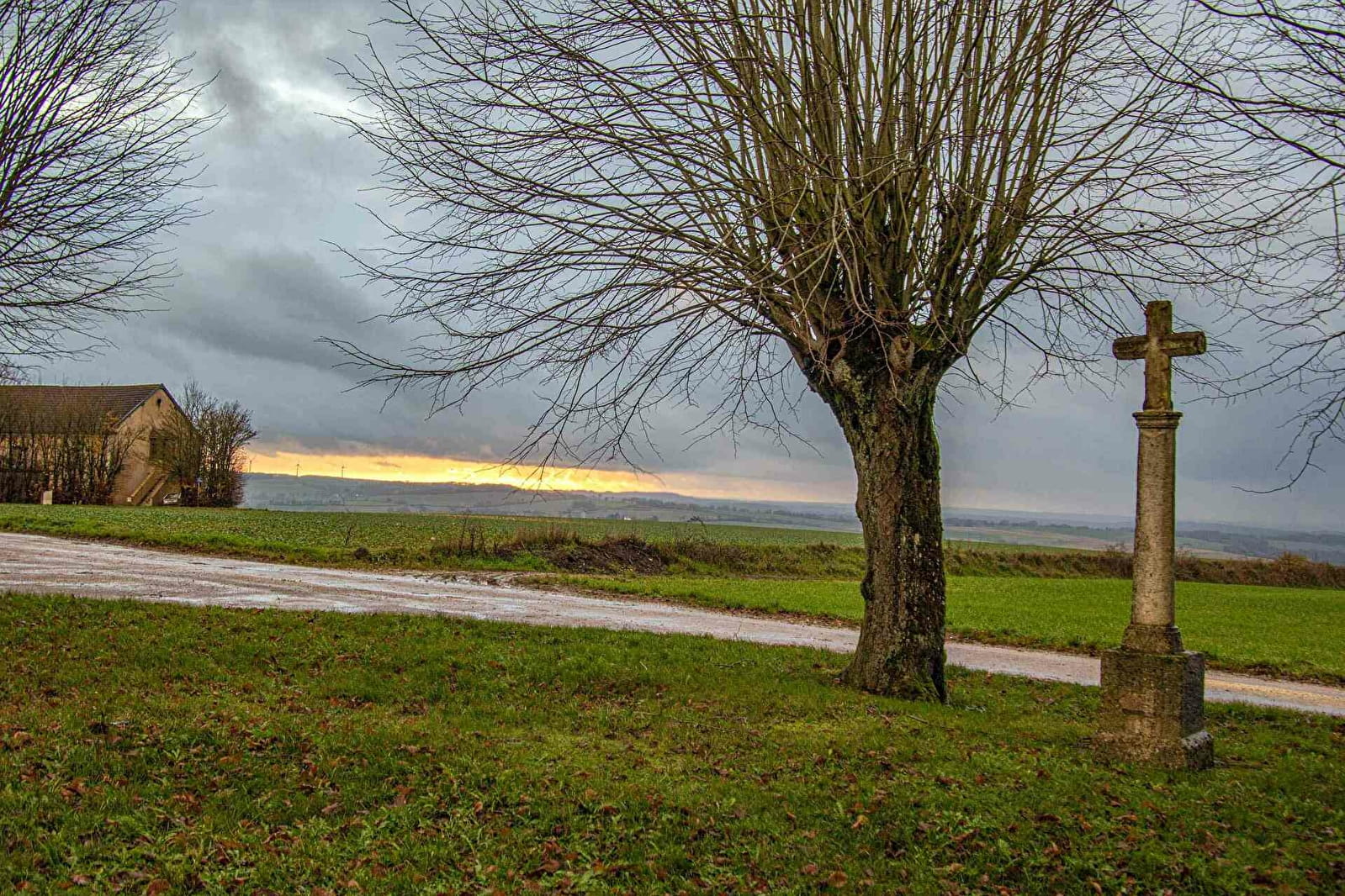 (5) Bifurquer à droite, passer à hauteur du cimetière à main droite. À la croix, passer tout droit pour rejoindre la Rue des Crôts. Tourner à droite. Prendre la Rue des Faubourgs par la gauche, puis devant le monument aux morts, remonter la Grande Rue.