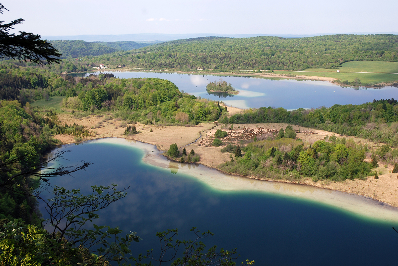 De la barre rocheuse qui marque le passage de la région des Lacs au plateau du Grandvaux, émergent le pic de l’Aigle et le belvédère des Quatre Lacs au cours d’une promenade boisée et lacustre.