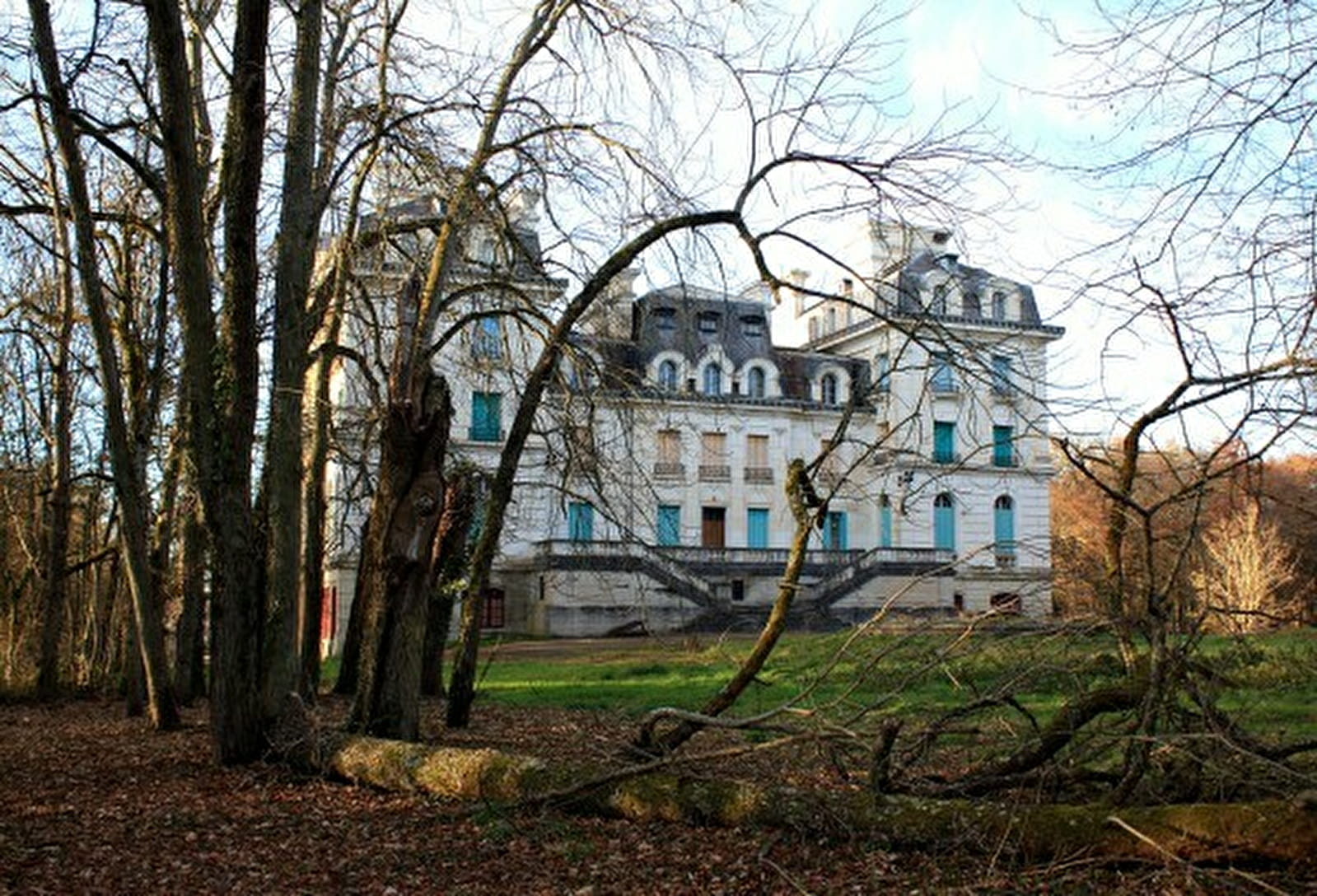 (5) Continuer, tourner à gauche et suivre le mur d'enceinte dissimulé en partie par une haie épaisse du château de Flassy. Arriver à la route.