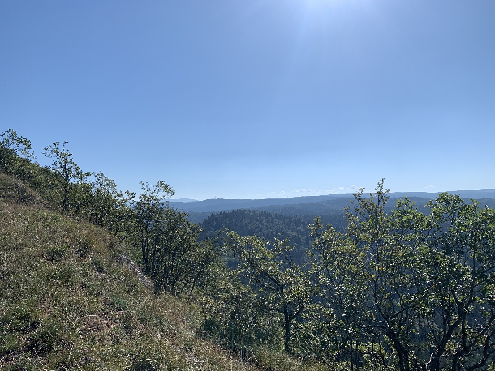 Au croissement des chemins, retrouver le sentier emprunté à l'aller. Descendre à droite vers Saint-Martin-du-Fresne pour arriver sur le parking et le point de départ.