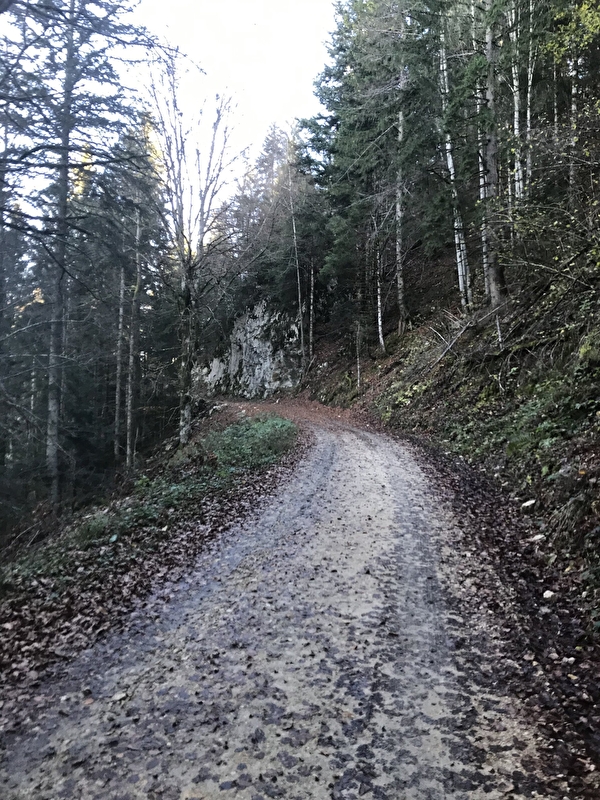 Prendre le chemin forestier à gauche sur 3km. Il longe le Bief à la Dame et mène au Golet Sapin.