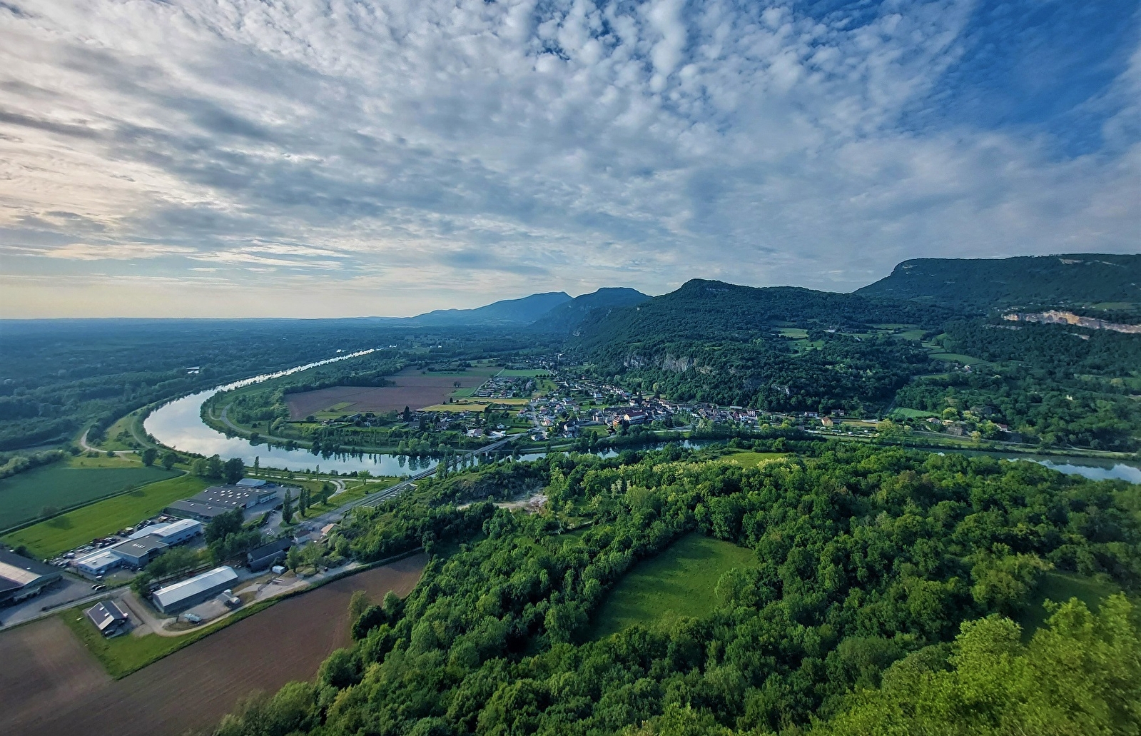 L'ascension permet de profiter d'un très beau point de vue sur le fleuve, les montagnes bugistes, la Chartreuse et les petits villages alentours. La fin de la boucle se faufile entre le fleuve Rhône et différentes grottes à flanc de falaise.