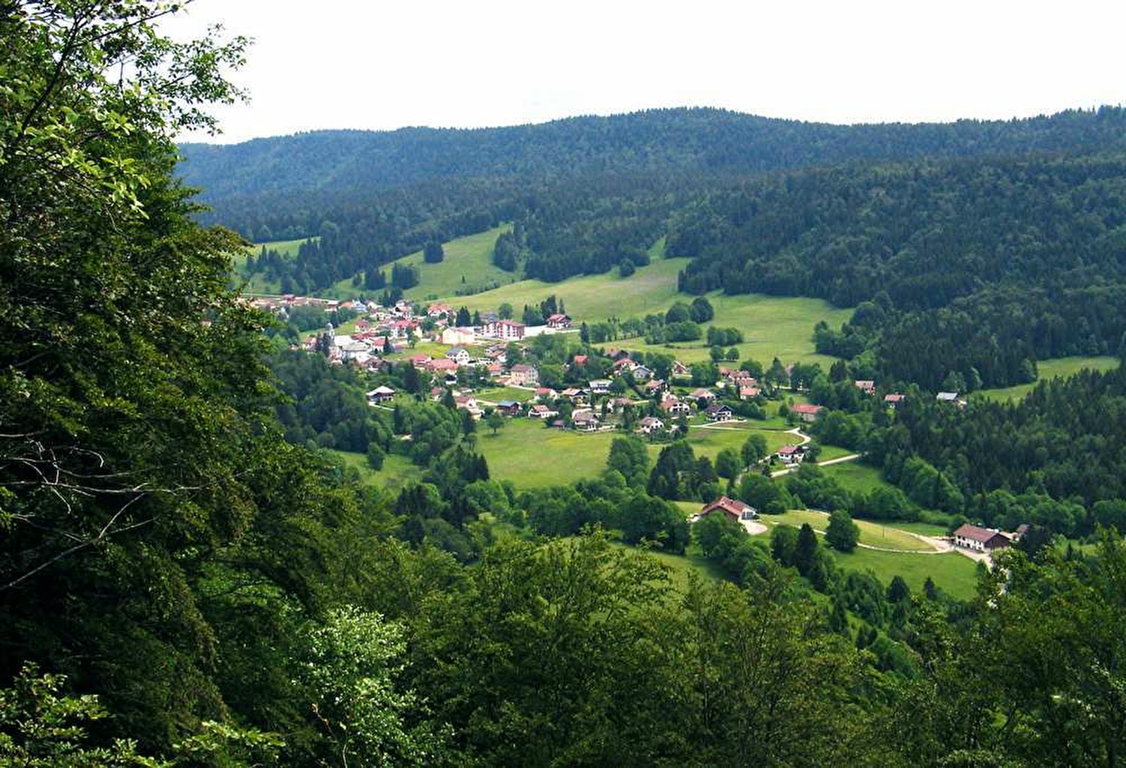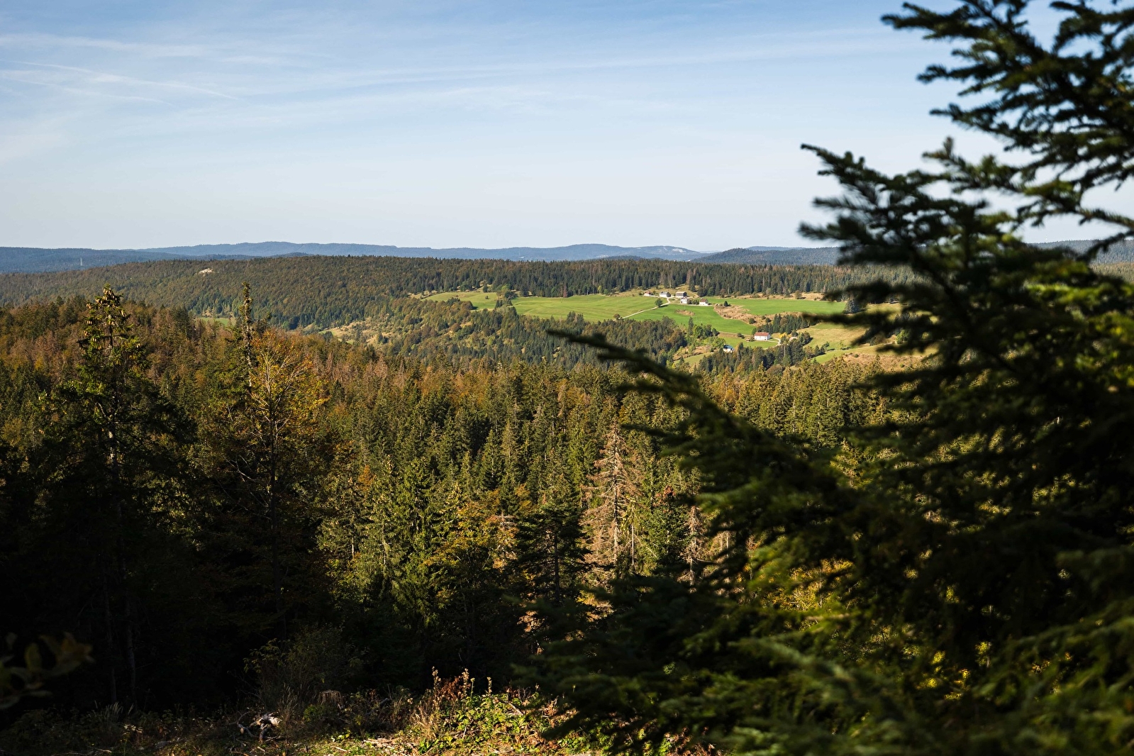 Le belvédère du Grand Remblai domine le village de Bellefontaine depuis la majestueuse forêt du Risoux. Situé au sommet du chemin d'accès à cette forêt emblématique du Haut-Jura, il donne une vue panoramique de la combe. Le visiteur se trouve ici en surplomb du paysage agricole et de ses pâturages, en plein coeur de la forêt.