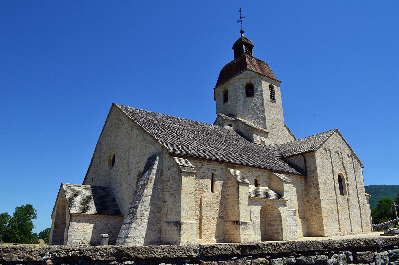 Parcours aux multiples centres d’intérêt : église romane de Saint-Hymetière, grotte, cascades, falaises surplombantes et rives de la Valouse.