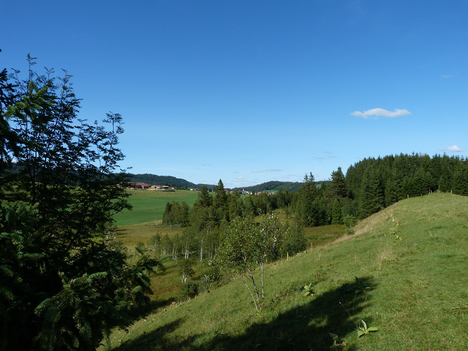 La commune des Pontets est située aux Combes Derniers, dominée par la crête de la « Haute Joux » avec le « Turchet » (1227 m) et le « Saint-Sorlin » (1237 m). L’église paroissiale date de 1845. Nous pouvons voir de vieilles fermes dont « Le Château » agrandi au XIXe siècle pour le philosophe Théodore Jouffroy, le plus illustre des enfants « Des Pontets ».Pour arriver au point de vue du Saint-Sorlin vous traversez des pâturages et une forêt d'épicéas. Au sommet (1237 m), la vue se dégage sur les villages alentours, la forêt de la Haute-Joux et par temps dégagé, bonus : on aperçoit le sommet du Mont Blanc au-dessus de la forêt du Risoux !