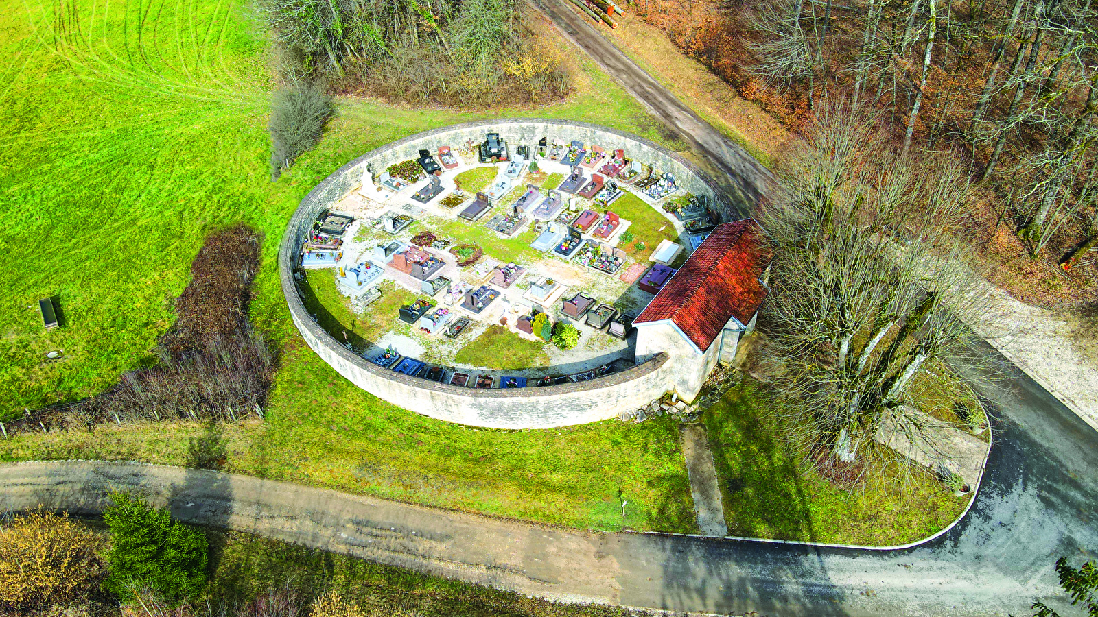 1• Place de l’église, prendre rue de La Goula, puis la route goudronnée sur 100 mètres. Au cimetière, prendre à gauche le chemin empierré.