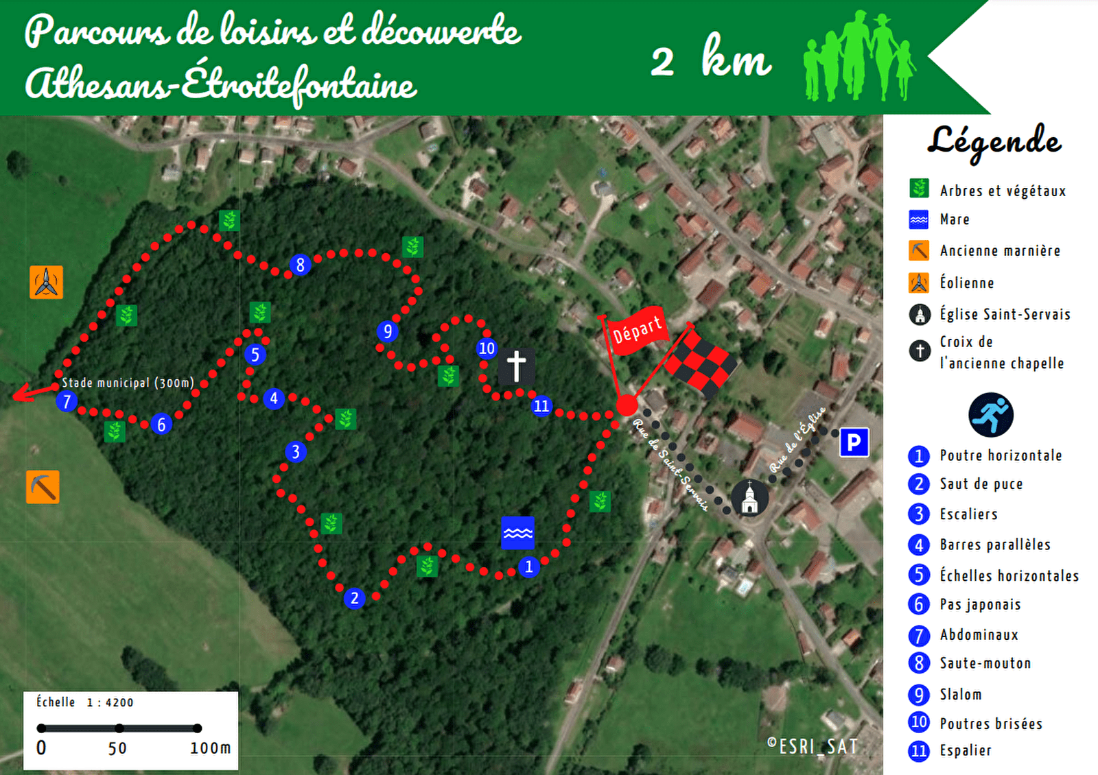 Ce petit parcours de santé dédié au sport et à la nature vous permettra de découvrir le Bois de Saint-Servais. Vous découvrirez le site de l'ancienne marnière (point 7) ou encore la Croix de Saint-Servais (1826), autrefois située près de l'ancienne chapelle aujourd'hui disparue (point 11)