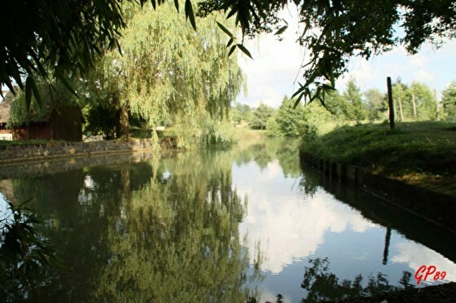 (2) Obliquer à droite. Devant la voie ferrée, virer à gauche. À la maison de garde barrière, traverser la voie ferrée et prendre le chemin de gauche qui suit cette voie ferrée. Entrer dans le domaine du moulin de Vanneau en longeant l’étang par la gauche, en direction de la ferme.