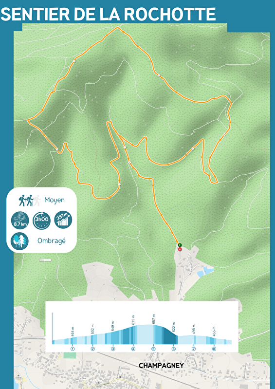 Pour cette randonnée, 2 départs sont possibles. Depuis la place Charles de Gaulle au centre du village ou en vous rendant sur le chemin du Champey, un espace forestier permet de se stationner.