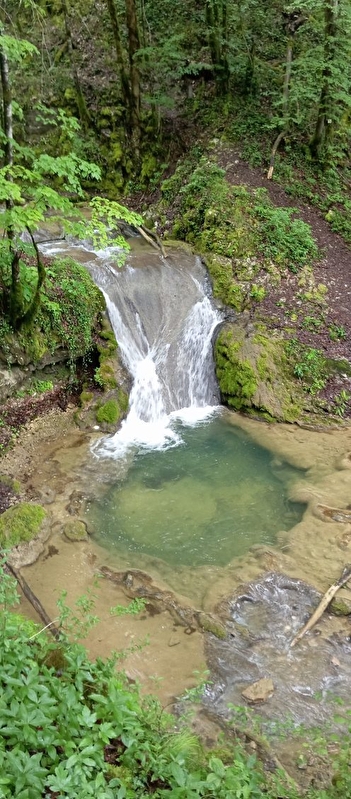 Depuis la rive gauche de la Loue, l'itinéraire remonte le ruisseau de Vergetolle et ses remarquables cascades, d'abord la Source Bleue et, plus en amont la cascade de la Tuffière. Le sentier continue ensuite dans la forêt avant de redescendre dans le vallon adjacent au bord du Raffenot. La fin de l'itinéraire gravit le chemin menant au village fortifié de Châteauvieux-les-Fossés pour ensuite redescendre à Vuillafans.