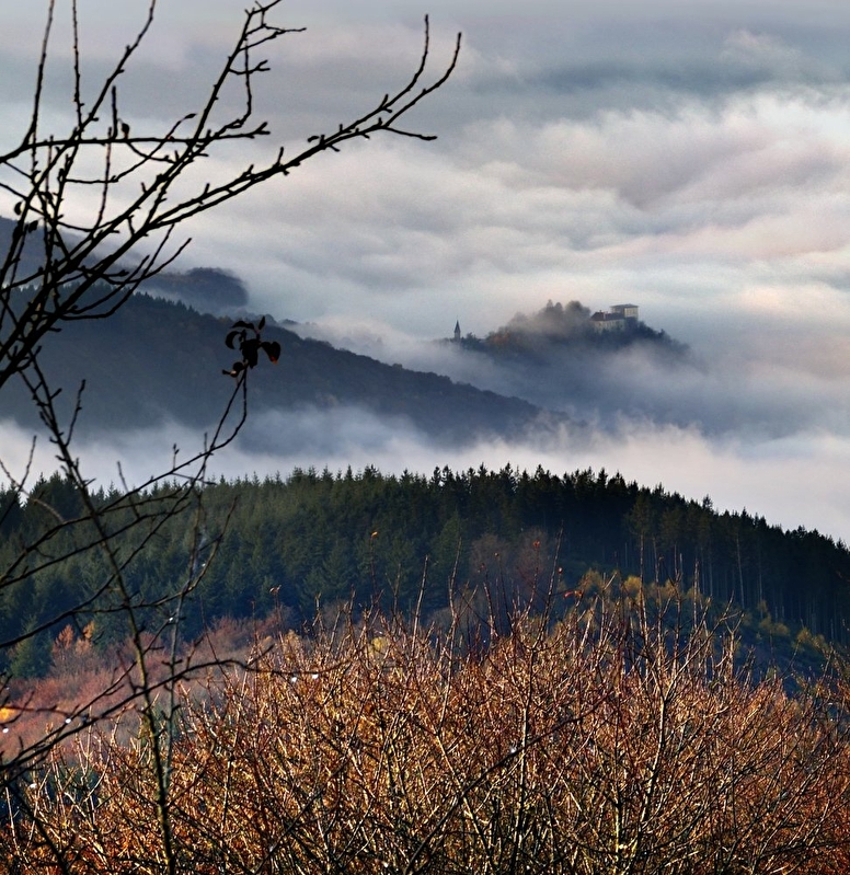Au Puits, virer à gauche sur la D27 et descendre vers la vallée de La Roche, bordée de prairies. Encore à gauche sur la D507, ne pas la quitter pour traverser Petiton. Contourner le Beuvray par Montvernot, tout droit au Crot des Hâtes, continuer jusqu’au Treux. Vue sur le château de La Roche, qui domine la vallée à Larochemillay.