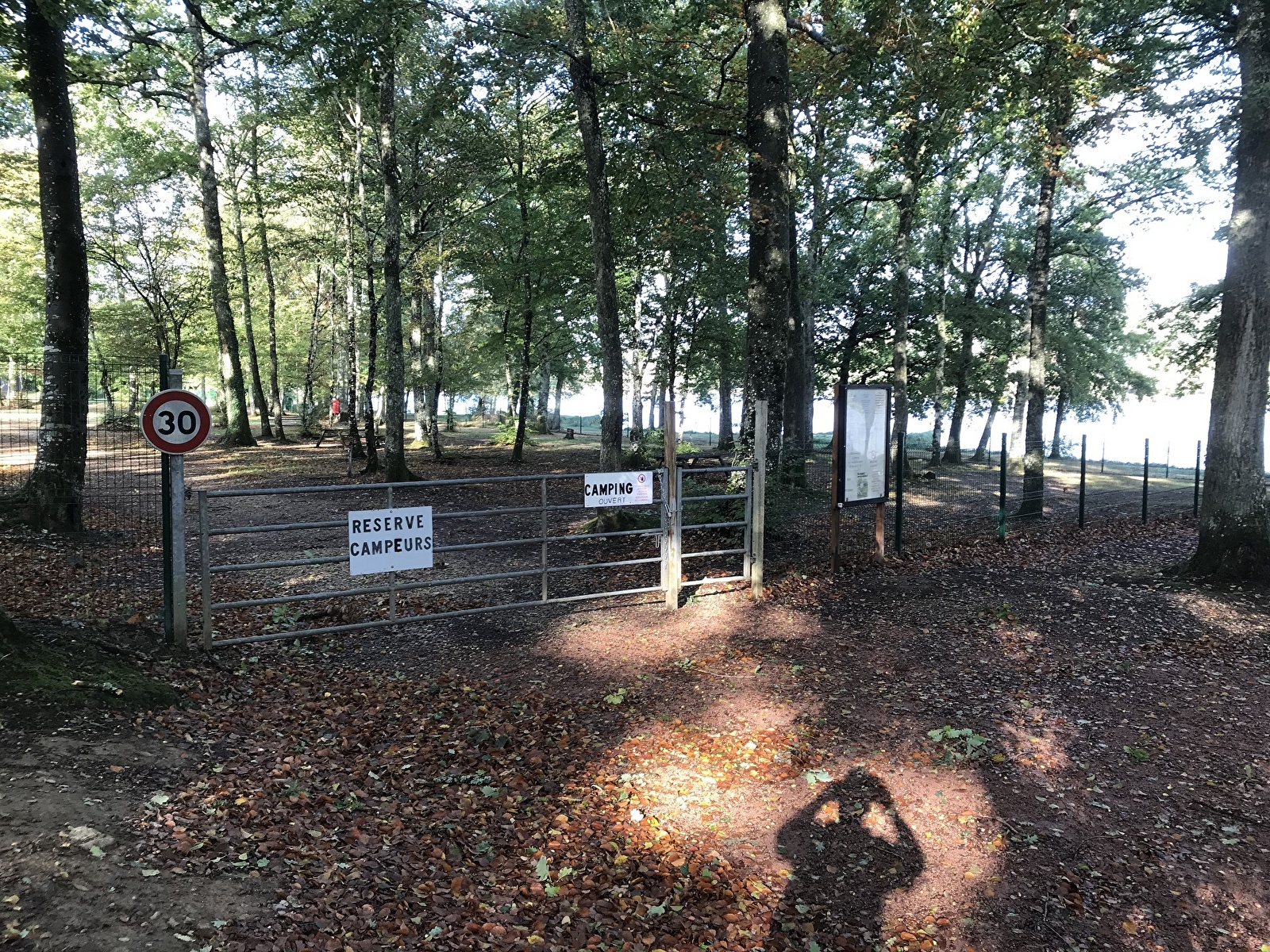 Camping ombragé auprès d'un étang de 50 hectares. Restauration près du camping.