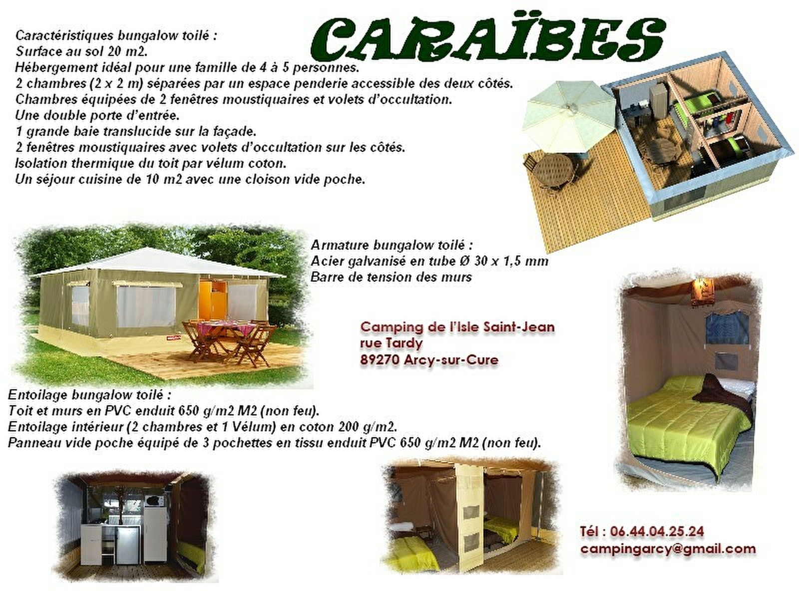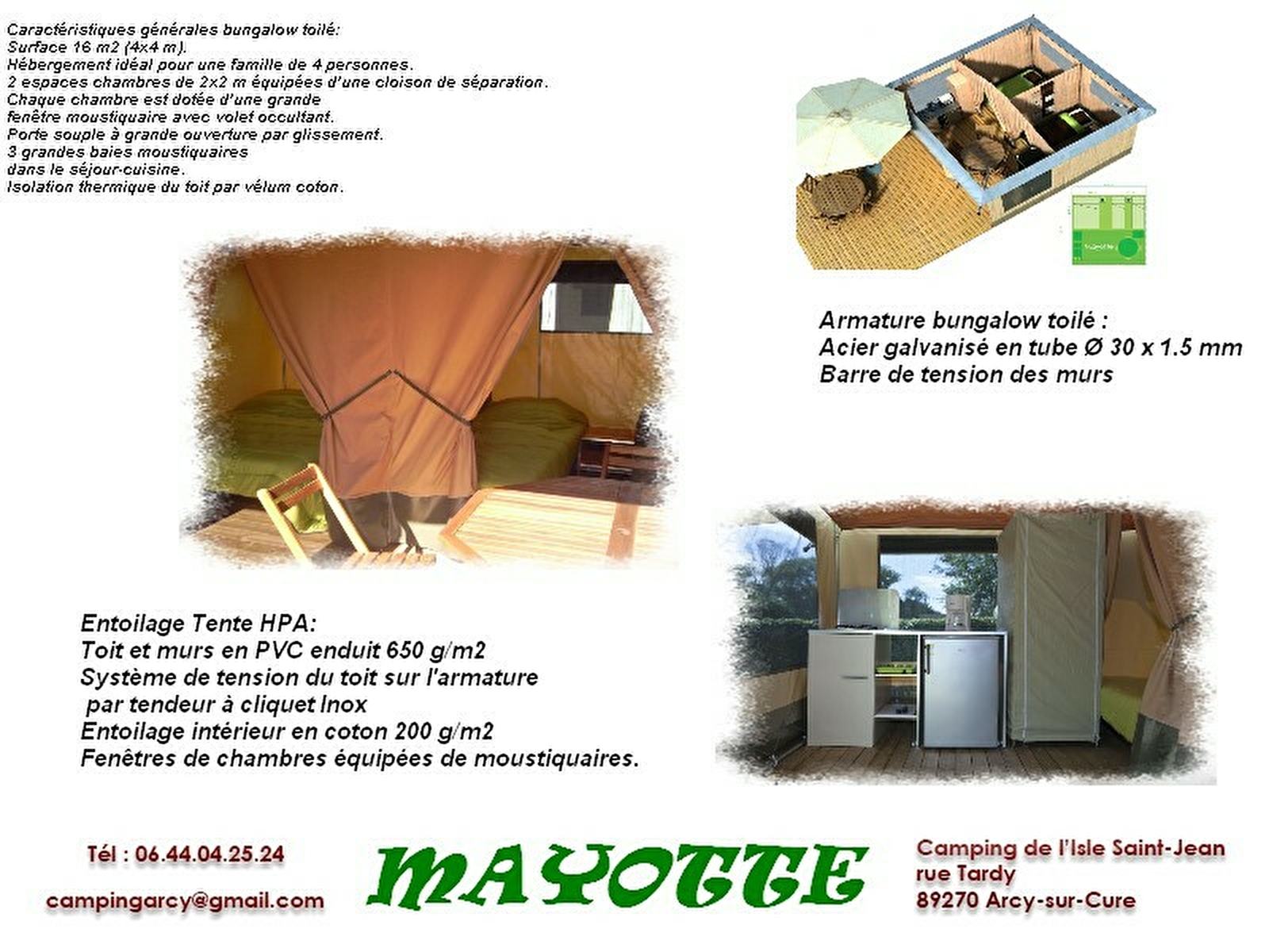 4 bungalows toilés équipés et meublés sont installés pour permettre un accueil confortable sur place - cet hébergement locatif peut recevoir 4/5 personnes.