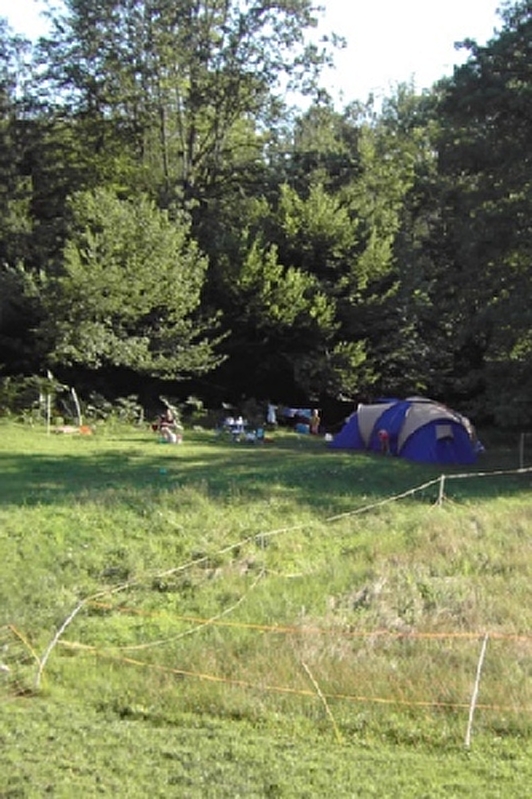 Camping à la ferme. Emplacements grands et ombragés, entourant les pâtures des animaux à côté du ruisseau et dans le bois. Ambiance naturelle, place fixe pour feu de camp. Accueil cavaliers avec parc. Elevage de chèvres et production de fromages. Sur la terrasse du moulin, vous pourrez savourer les pâtisseries maison et les fromages de chèvres. Randonnées avec les ânes de la ferme et visite du moulin Ouvert du 1er avril au 1er octobre.