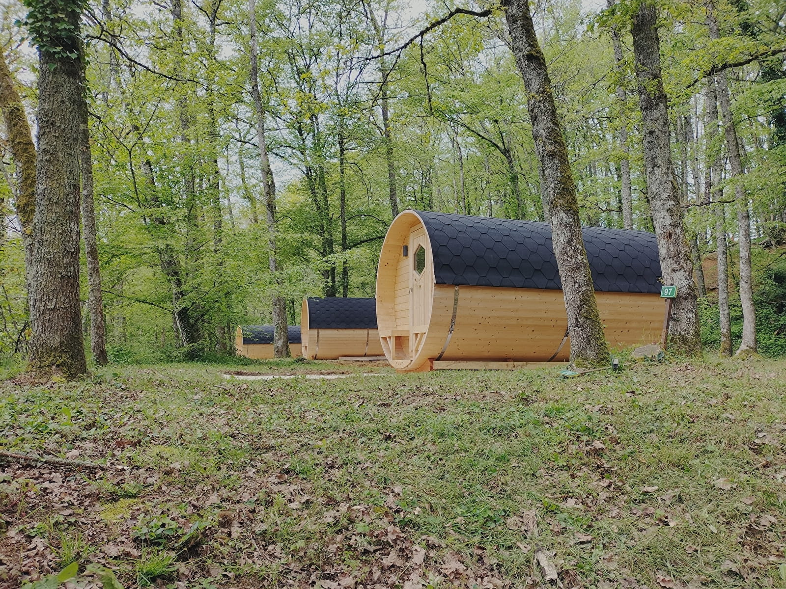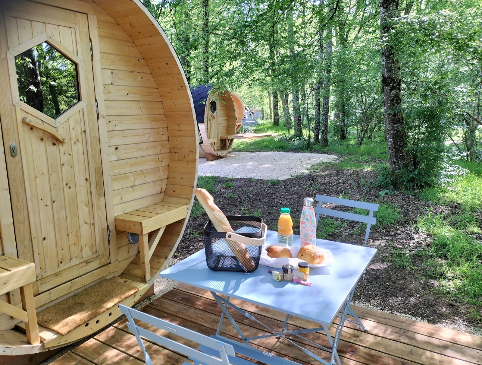 Idéalement situés au lac du Bourdon, les barels du camping de la Calanque, sont faits de tonneaux à fond plat. Une alternative originale pour les amoureux de la nature et de la pêche.