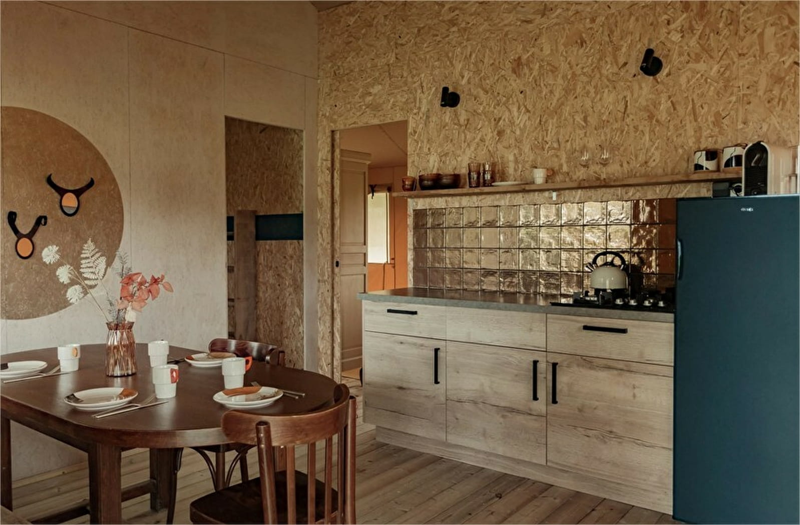 Bienvenue au camp Festilux, tentes de safari luxueuses en Bourgogne. Après une journée bien remplie, enfoncez-vous dans un hamac tout en profitant du soleil du soir. Dans votre main droite, un bon vin de Sancerre ou Chablis et sur la petite table à côté de vous, les fromages les plus savoureux de la région. Outre le calme qui vous entoure, vous entendez au loin les enfants jouer entre eux. Ce soir, une fois de plus, vous n'avez pas besoin de cuisiner et vous pouvez simplement vous asseoir à table.