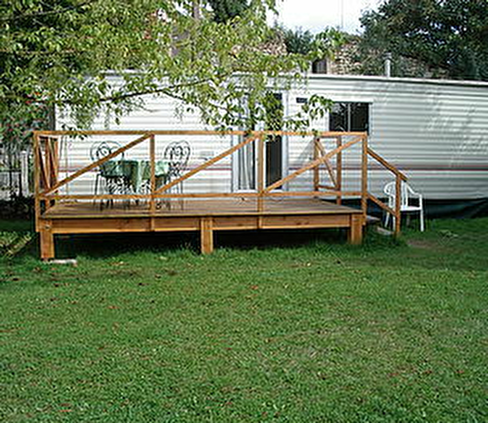 Installé dans le parc, notre bungalow avec terrasse ombragée se compose d'un séjour, cuisine équipée, téléviseur, réfrigérateur, climatisation, wc, salle d'eau, 1 chambre lit double, 1 chambre 3 lits simples, barbecue