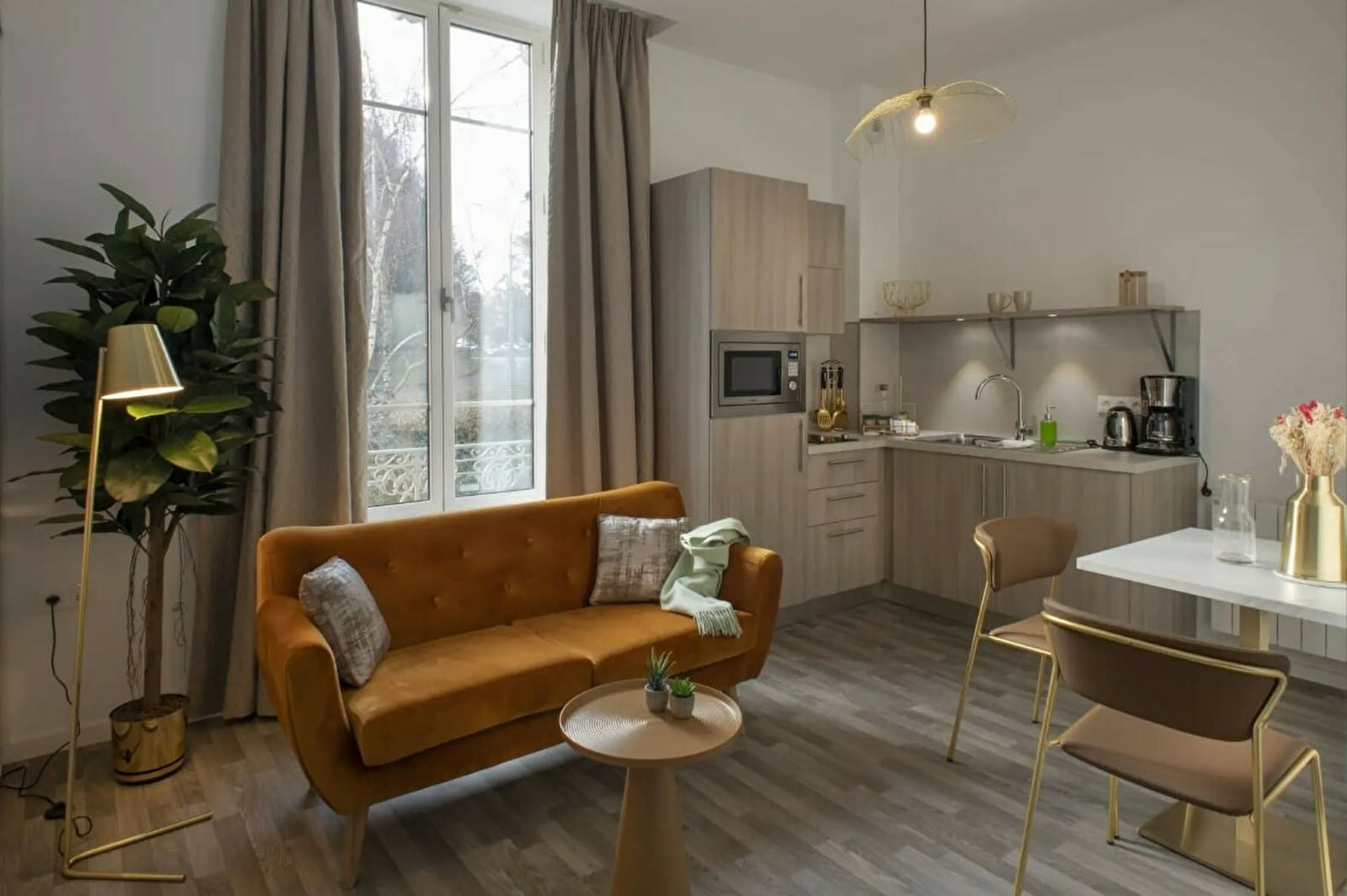 Huit appartements équipés sont disponibles à la location pour vos courts ou longs séjours. Cette résidence hôtelière vous offre une prestation unique : un hébergement privé et la possibilité de profiter d’une piscine intérieure, d’un sauna, d’un service de restauration et d’une salle de remise en forme.