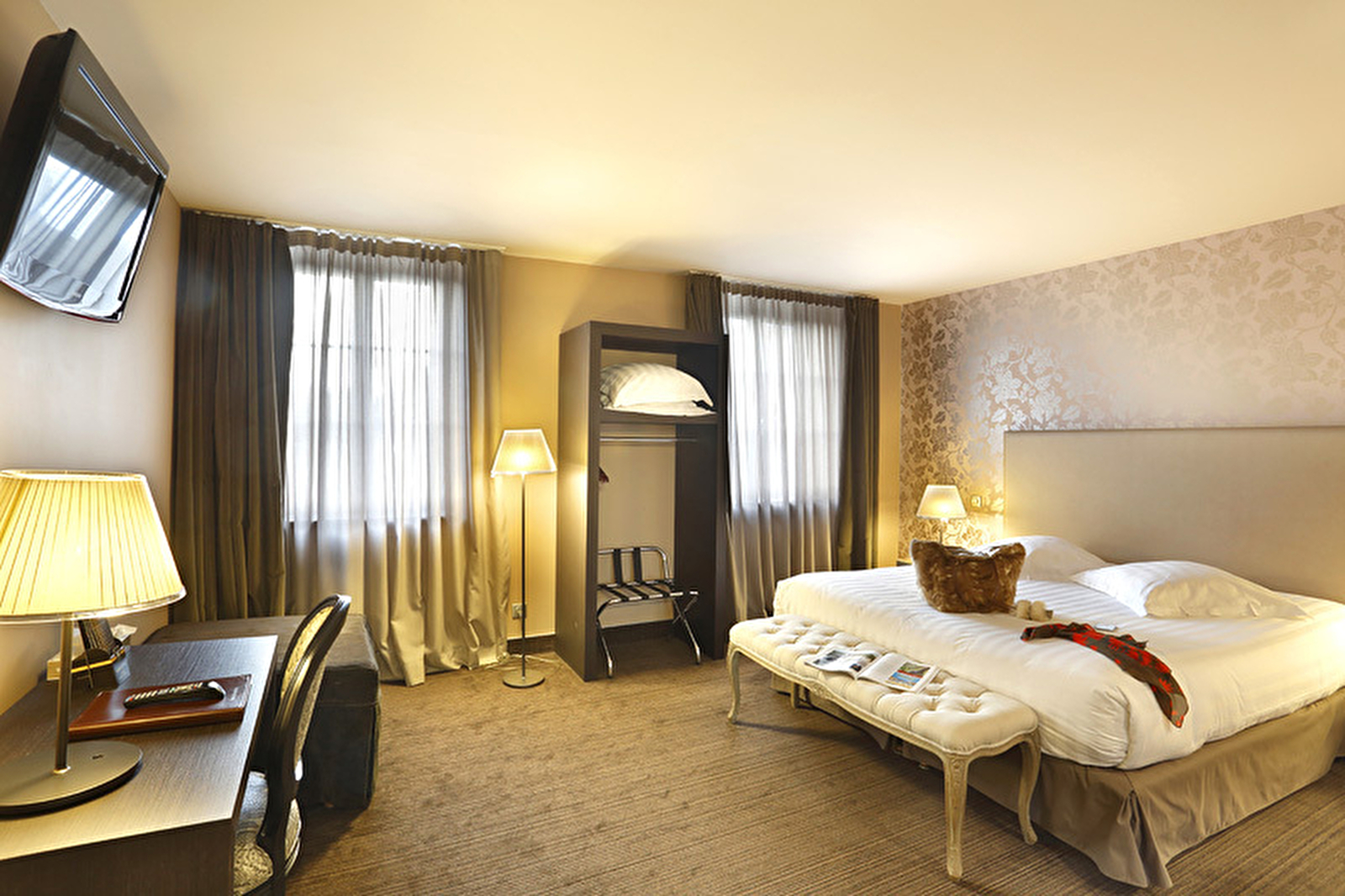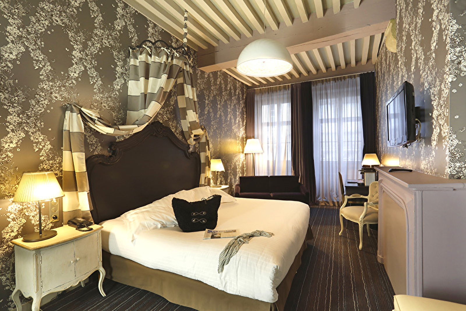 Hôtel entièrement rénové avec un parti pris de décoration soigné et moderne tout en respectant le charme initial des lieux.