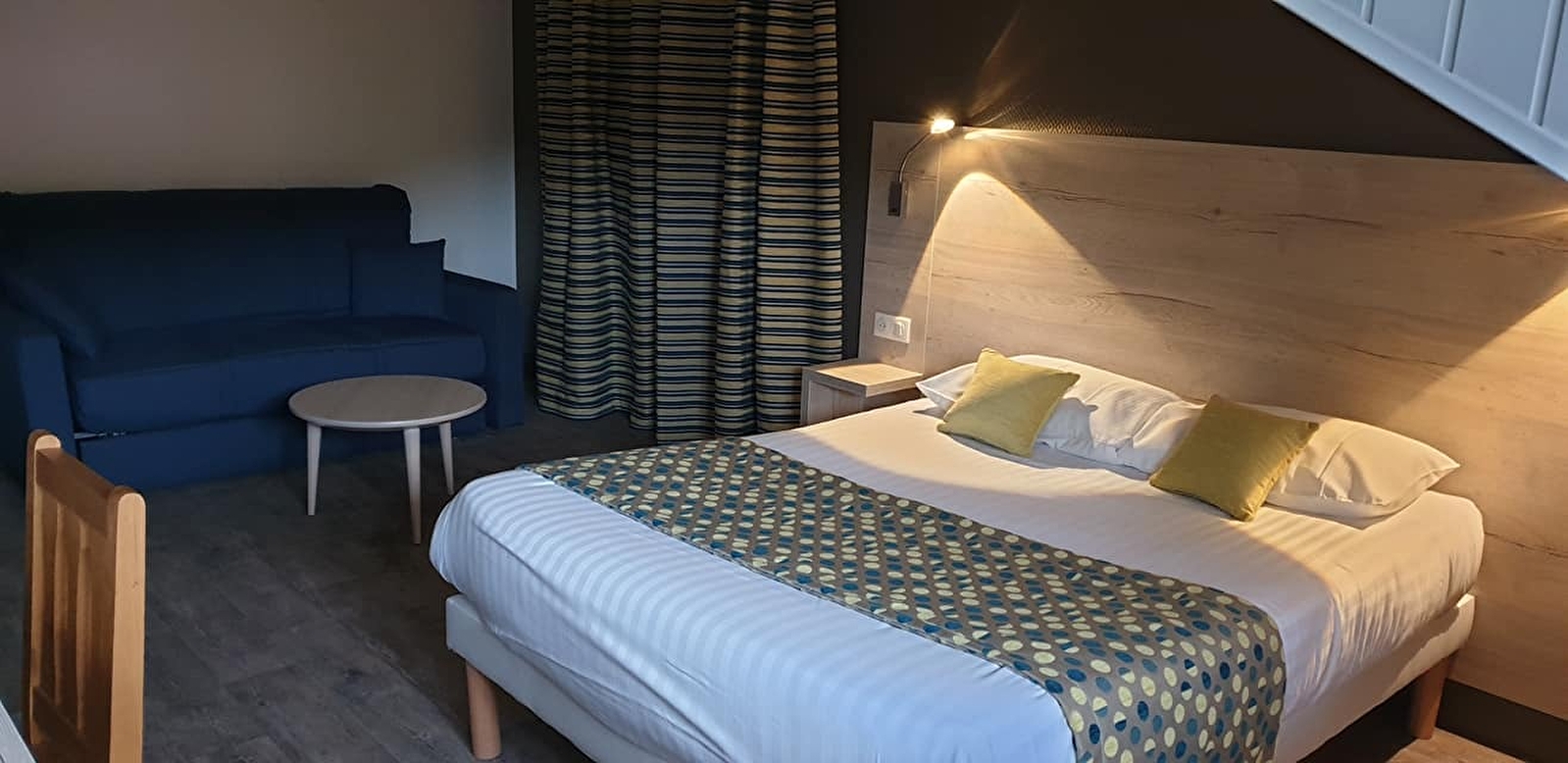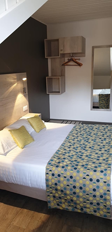 Alliance de modernité et tradition, l'hôtel-restaurant intégralement rénové en 2019, dispose de 15 chambres confortables : 8 chambres doubles, 3 doubles supérieures, 2 chambres triples (transformable en quadruple) et 4 chambres quadruples (communicantes).