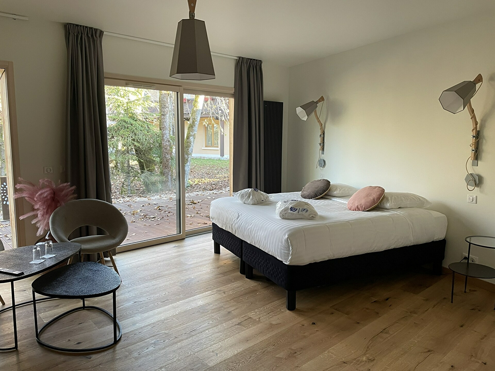 Logis hôtel élégant 3 étoiles avec des chambres tout confort. Nous vous proposons des suites nature avec bain nordique ou baignoire balnéo, une terrasse avec vue sur le parc arboré.