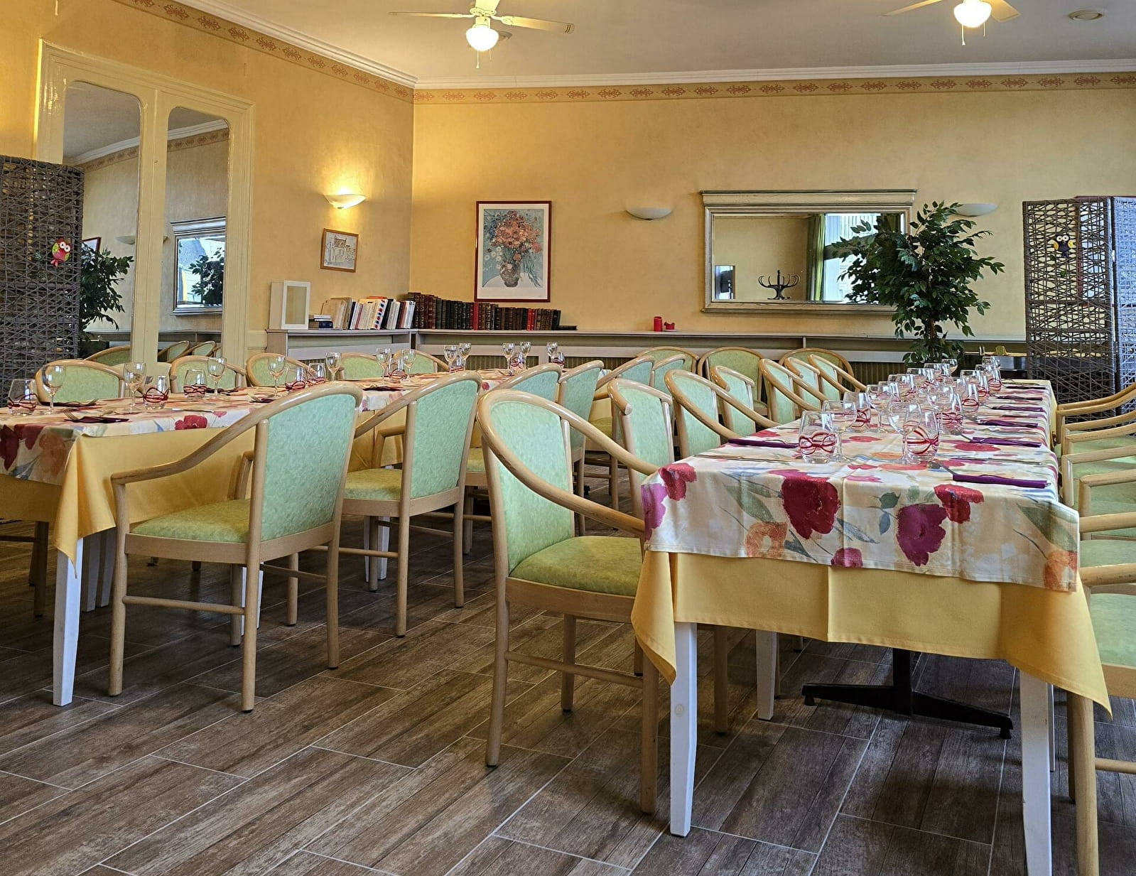 Le restaurant propose aux clients de l'hôtel, une cuisine française de tradition, variée et équilibrée, de multiples formules pour satisfaire tous les goûts et les appétits. Possibilité d’avoir des plats sans gluten, bio ou végétariens. Pour un repas en famille, un évènement professionnel ou soirée étape, un bar de 20 couverts et une salle de 45 couverts sont à votre disposition.