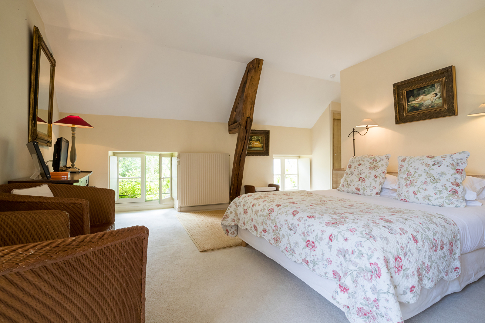 La famille Perrin (3ème génération de viticulteurs) a su mêler avec goût confort et beauté de la nature, créant ainsi une véritable étape de charme à 3 km de Beaune. Les vieilles poutres, les cheminées anciennes ont été conservées, et l'on se sent ici comme chez soi dans un calme absolu.